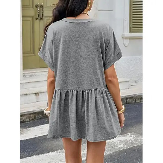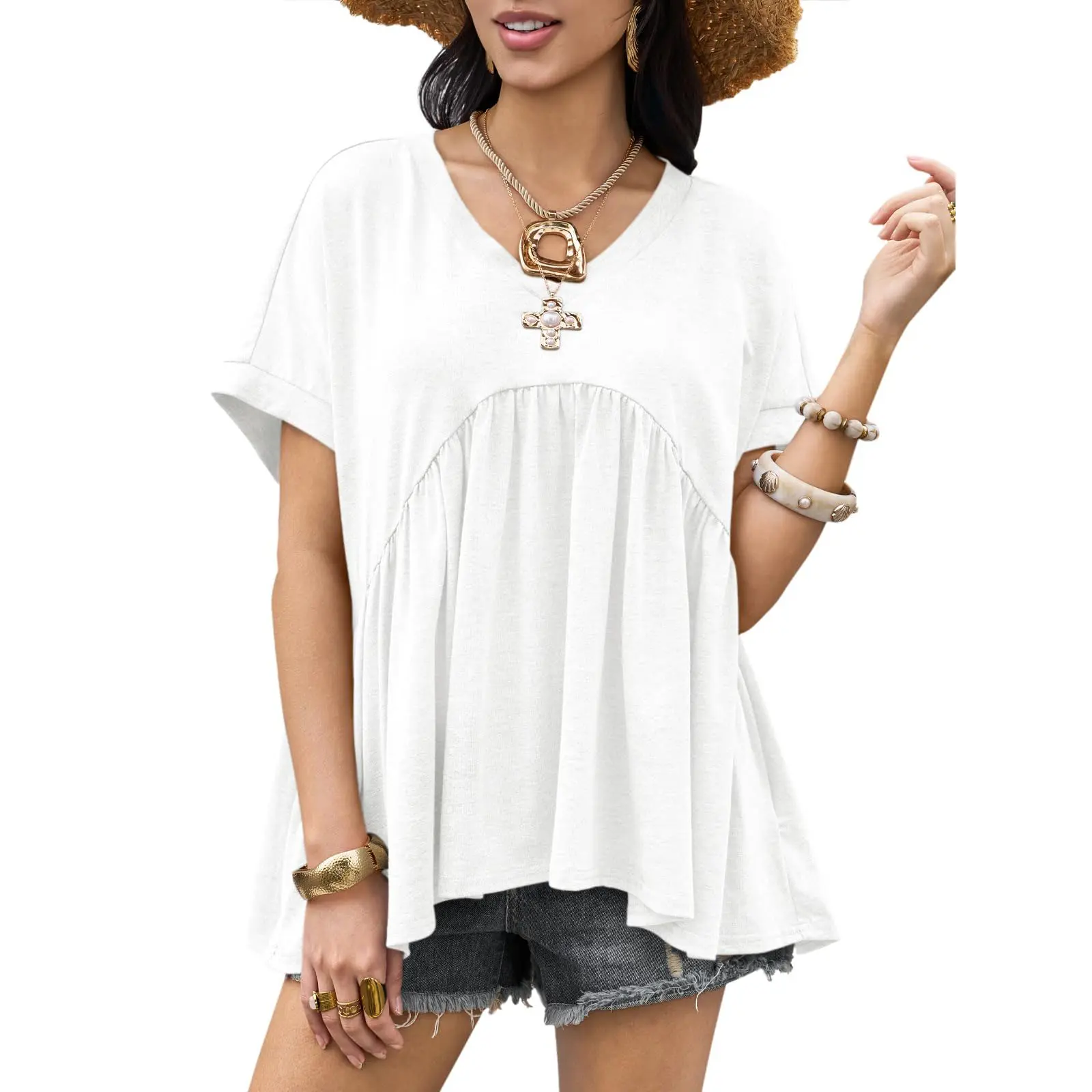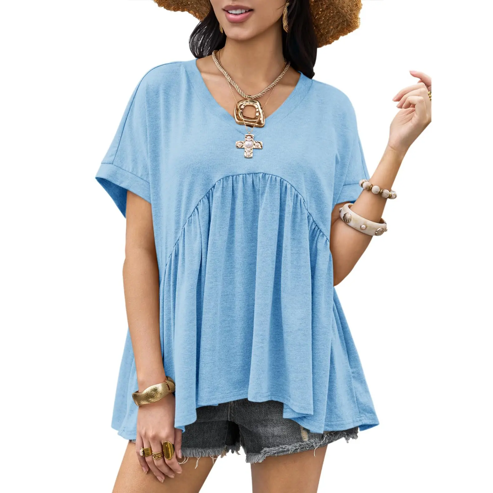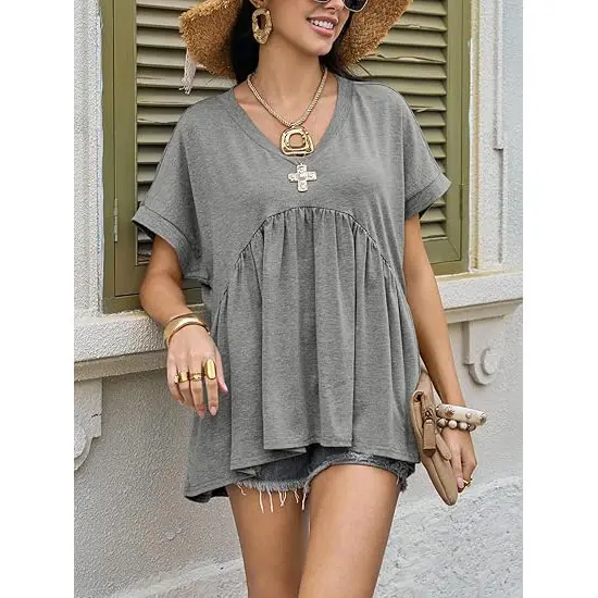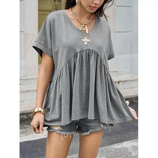 Feature: V neck t-shirts, short sleeve tops, short sleeve flowy swing blouses, trendy babydoll tops, summer peplum tops. Easy to wear and suitable for any age
