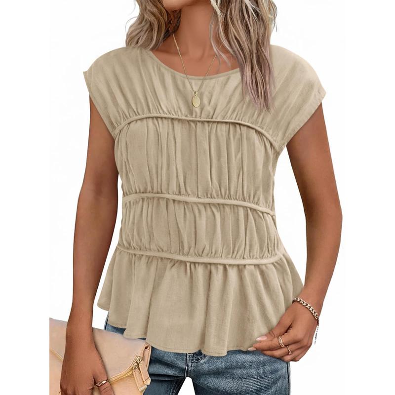 Unique Design: Featuring ruched details and a tiered shirred design, these cute crew neck blouses add a unique texture to your wardrobe, making them perfect for casual outings or special occasions