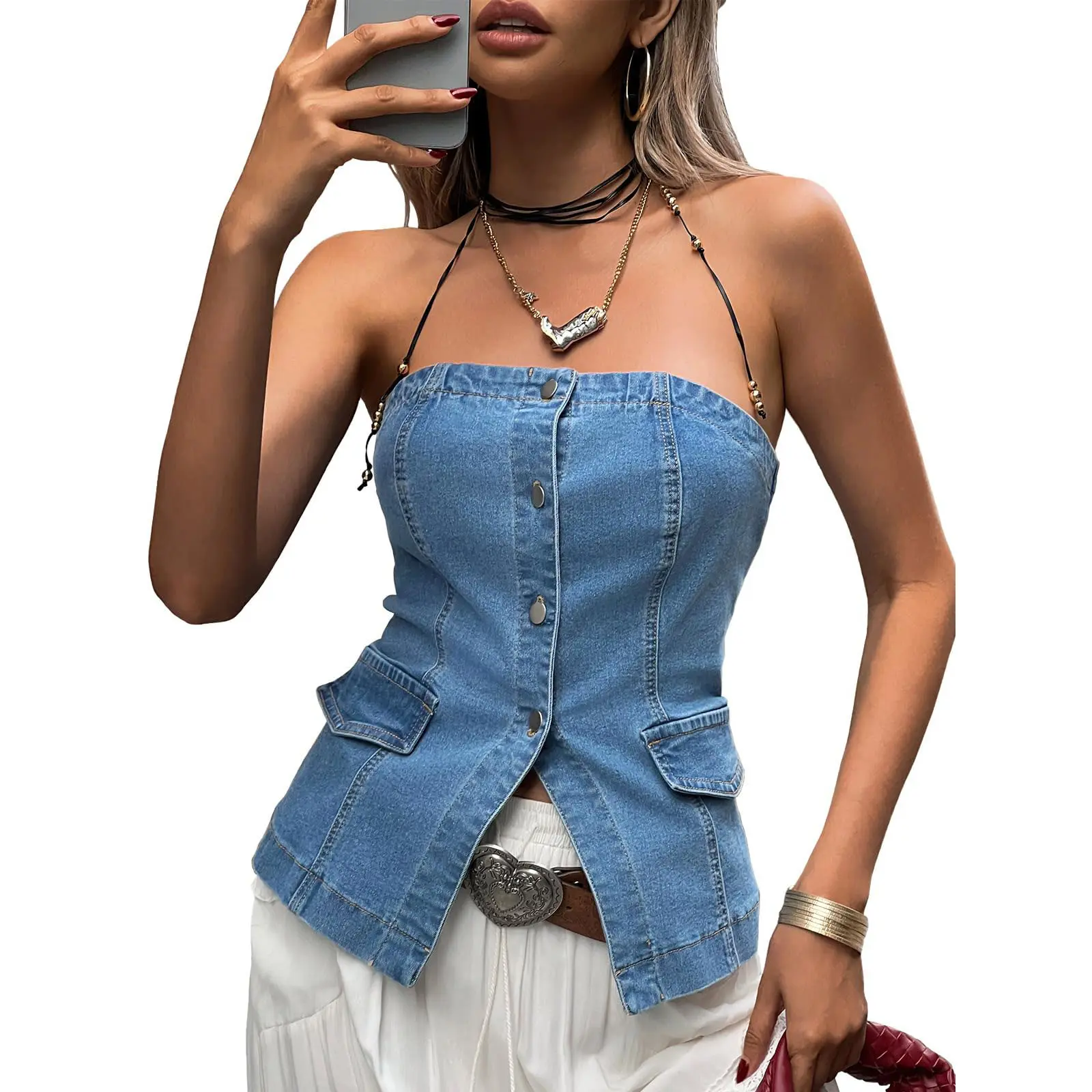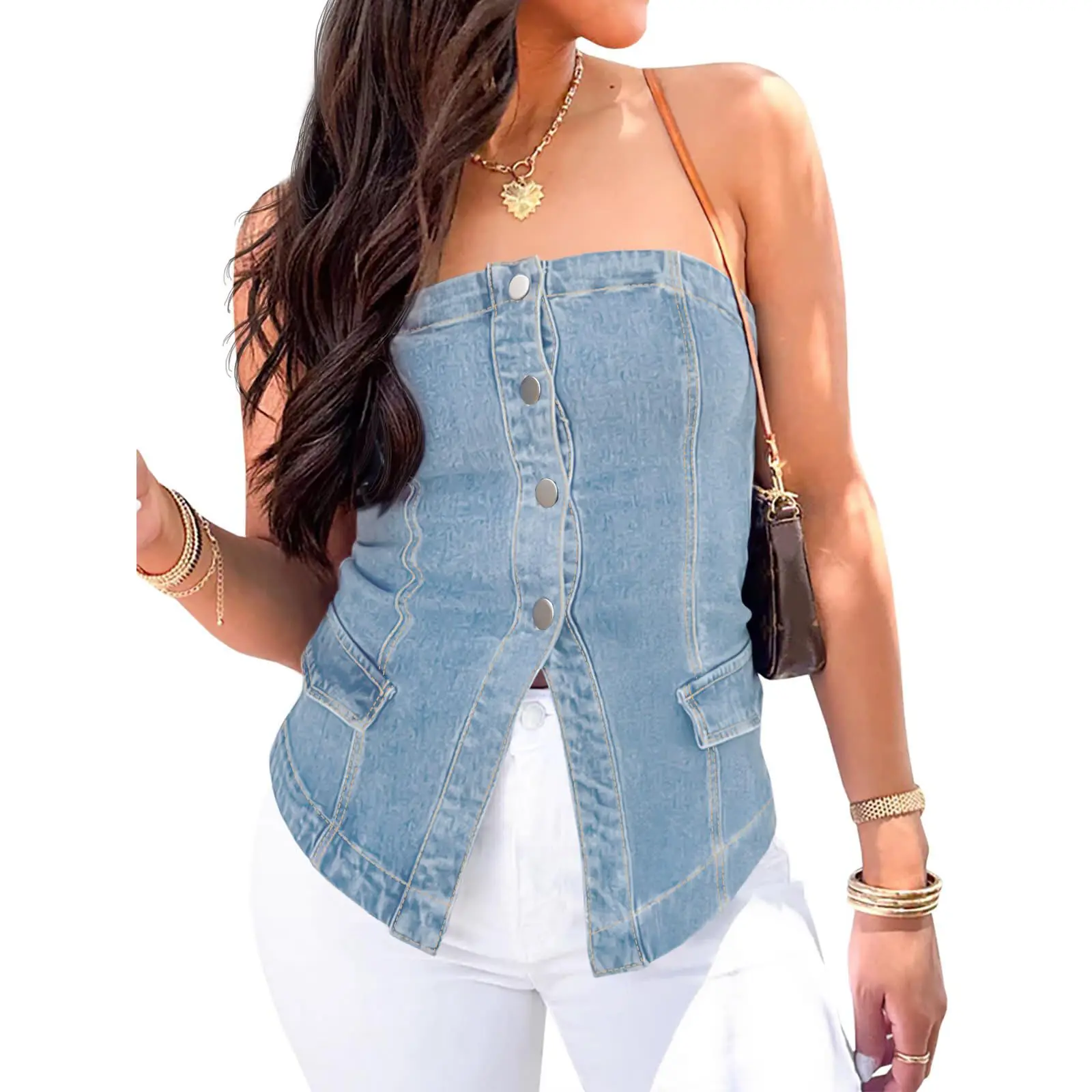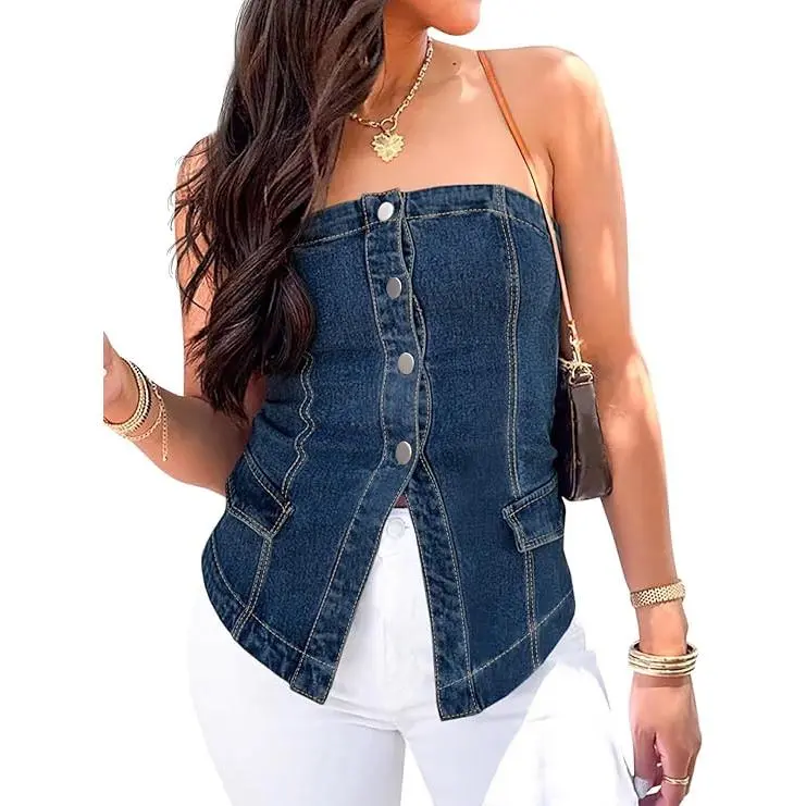 Premium Quality: Womens strapless vest made from high-quality denim fabric, this jean waistcoat vest is durable and comfortable to wear