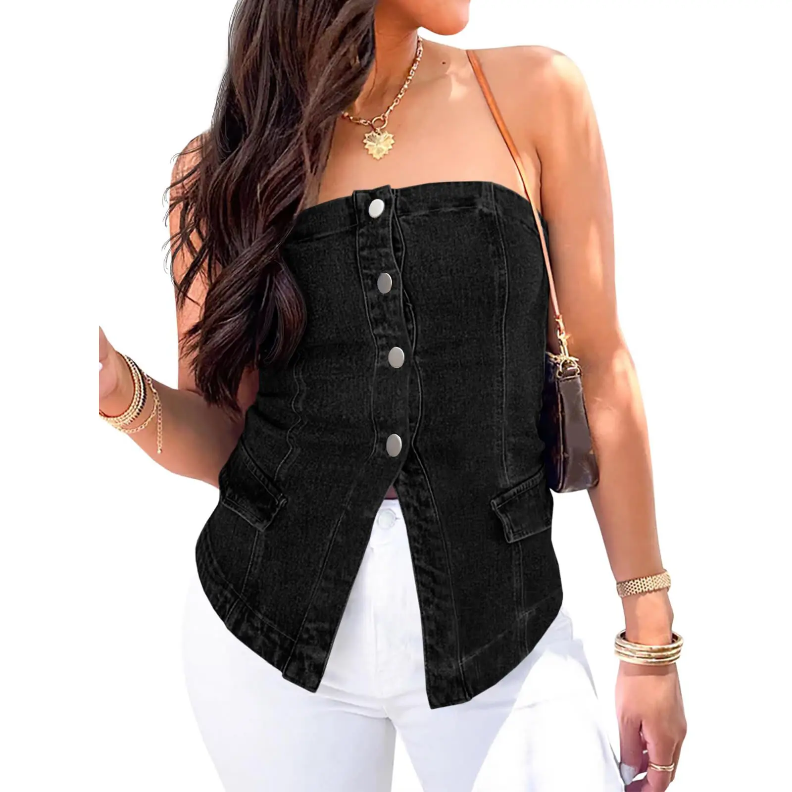 Matching: The button down tube tops perfectly matched with trousers, shorts, to compelete a fashion look. Or pair it with a dress for date night