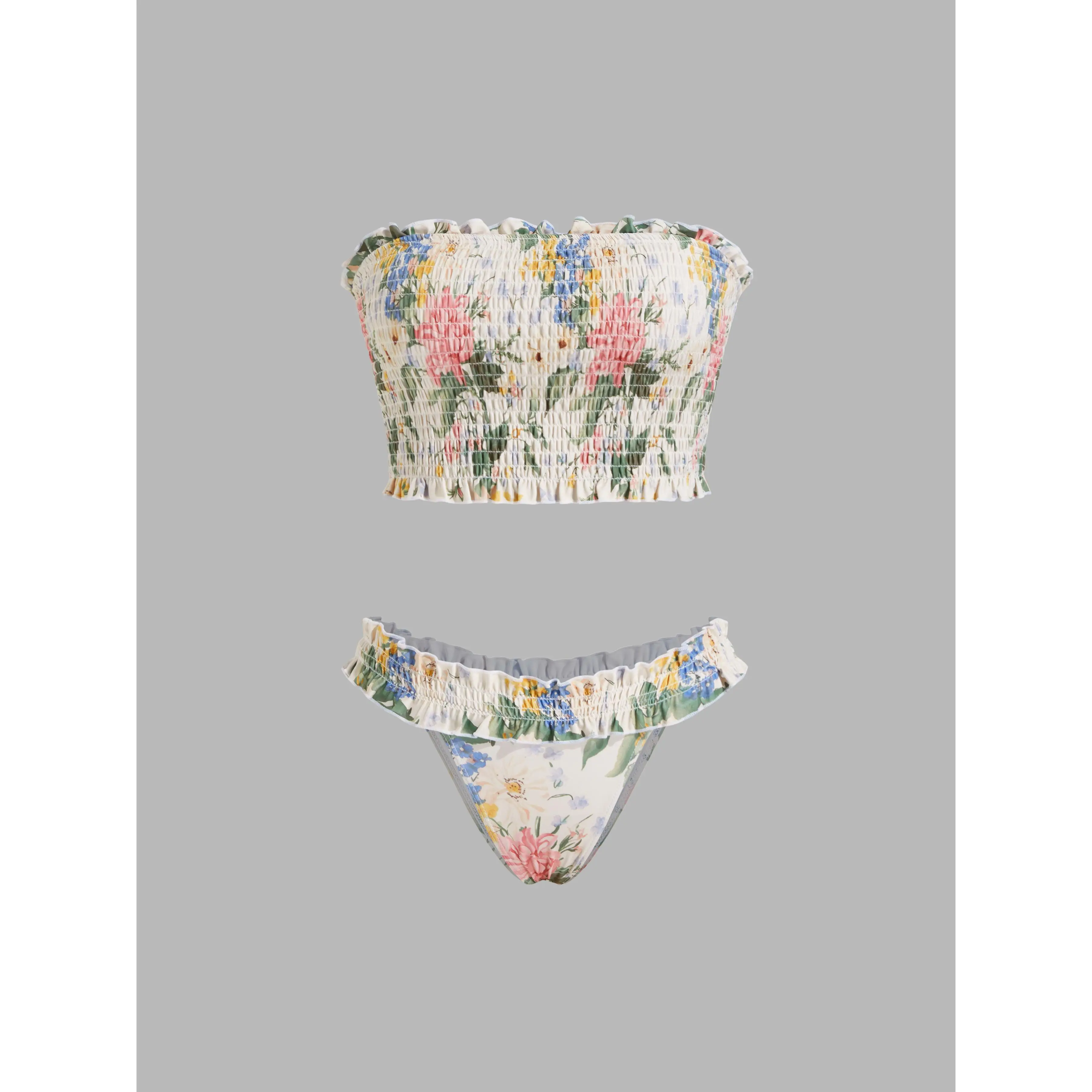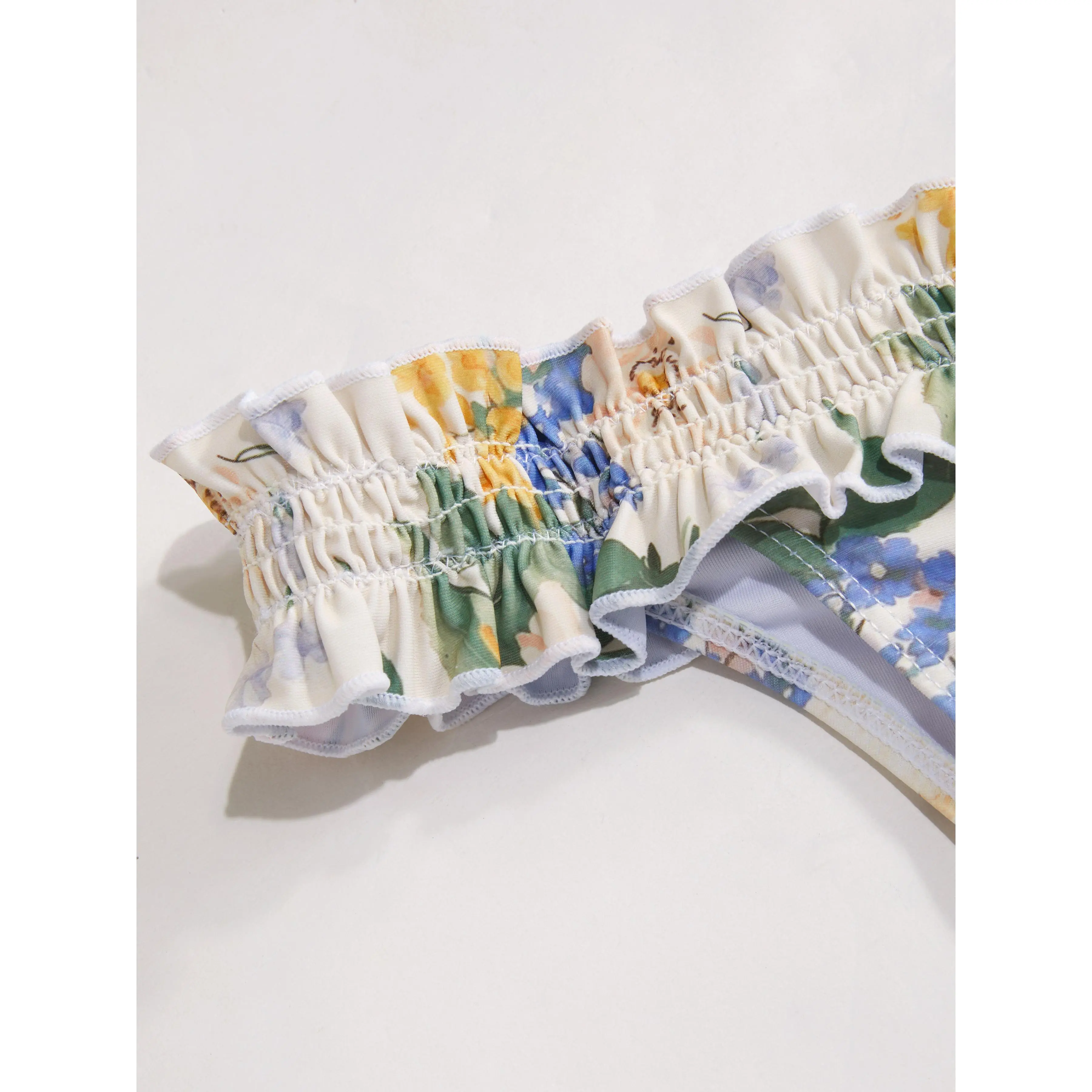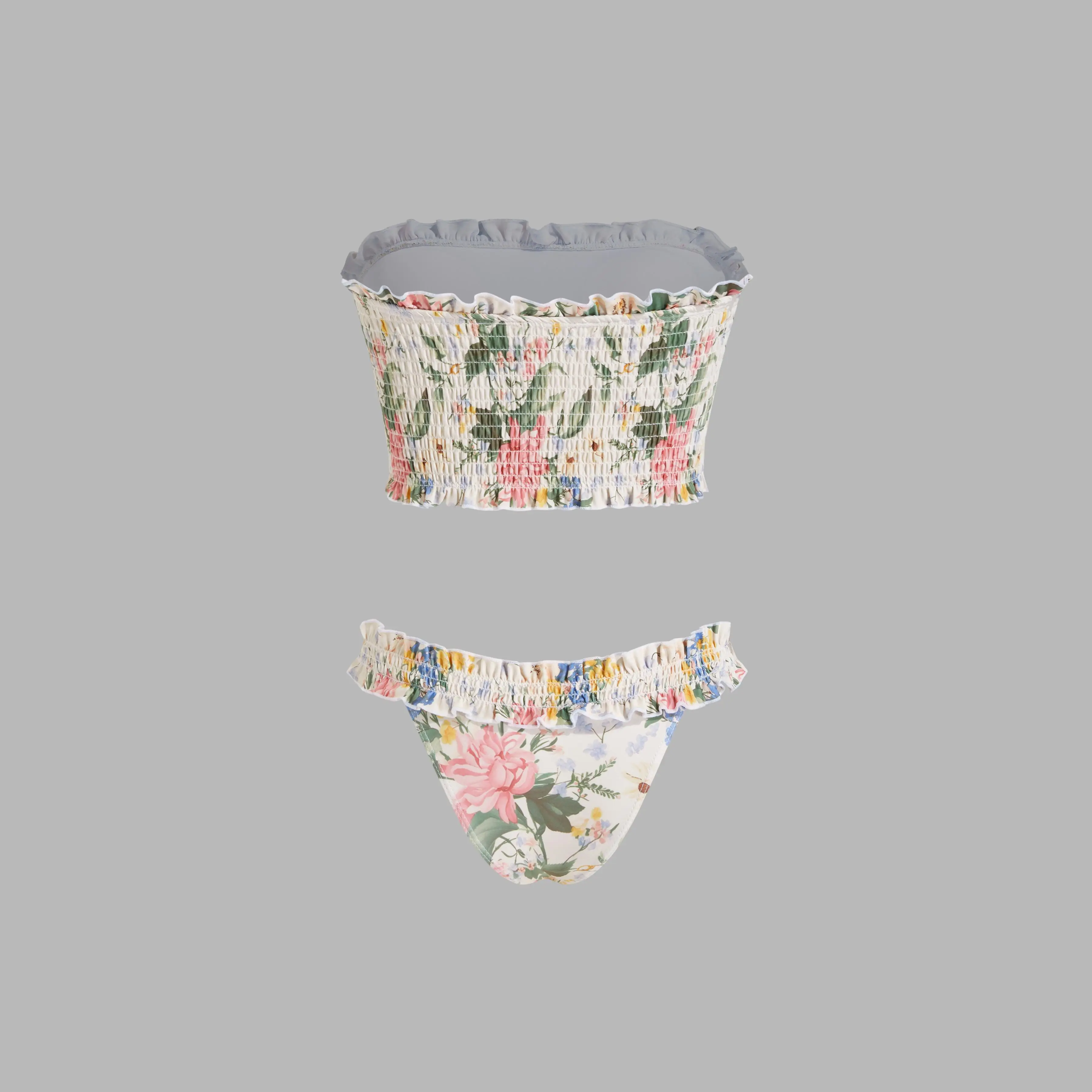 Cider Bandeau Floral Shirred Lettuce Trim Bracelet Bikini Set SpringStatements