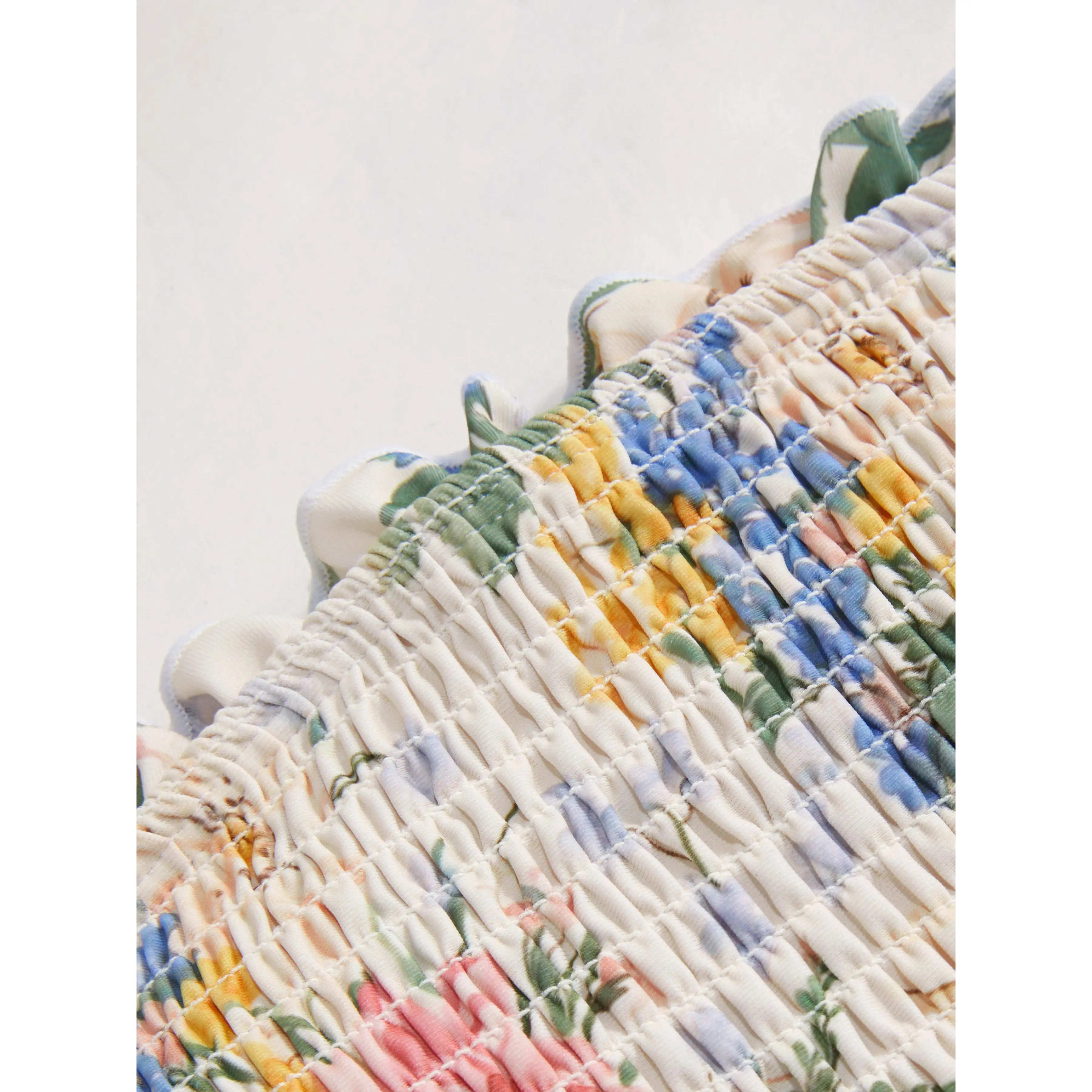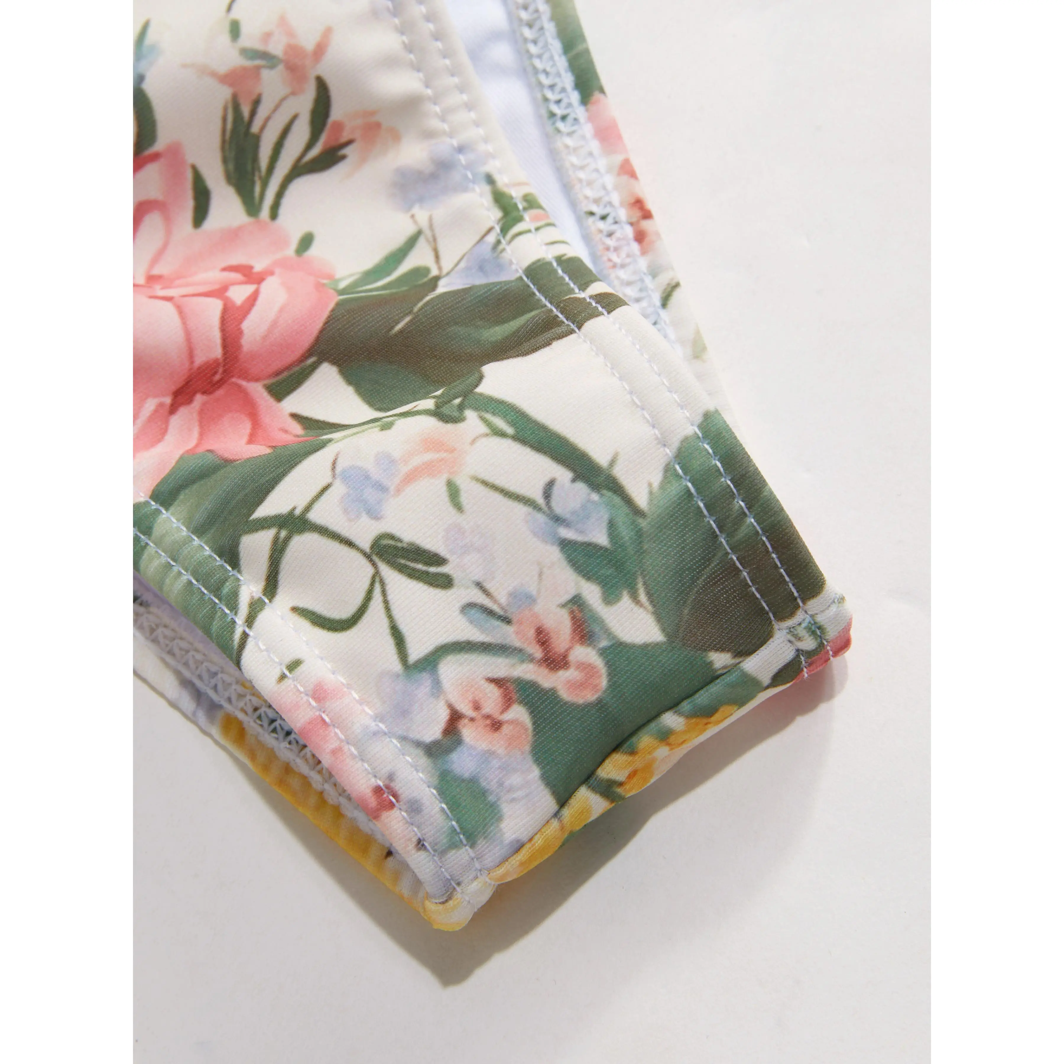 5. Cider Bandeau Floral Shirred Lettuce Trim Bracelet Bikini Set SpringStatements