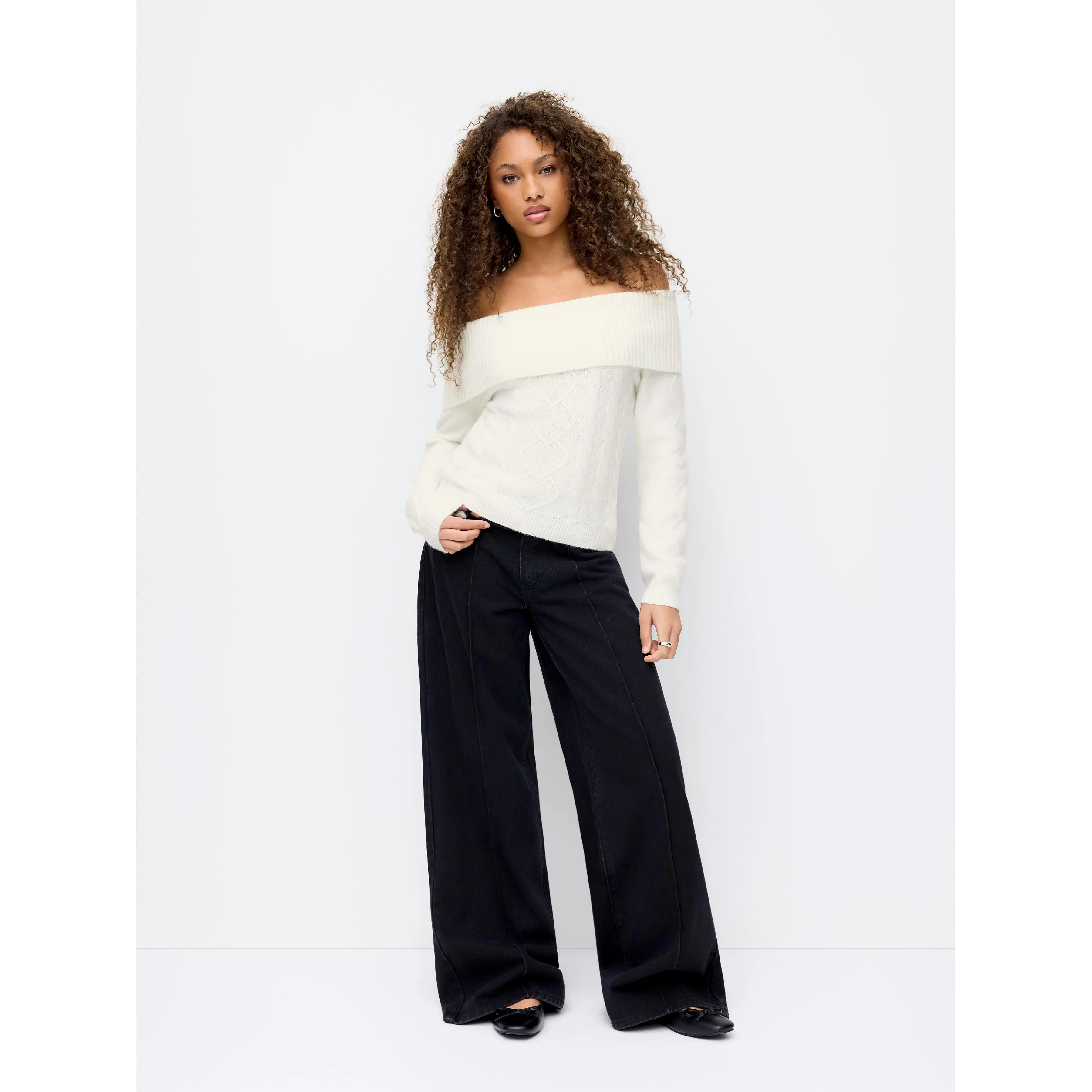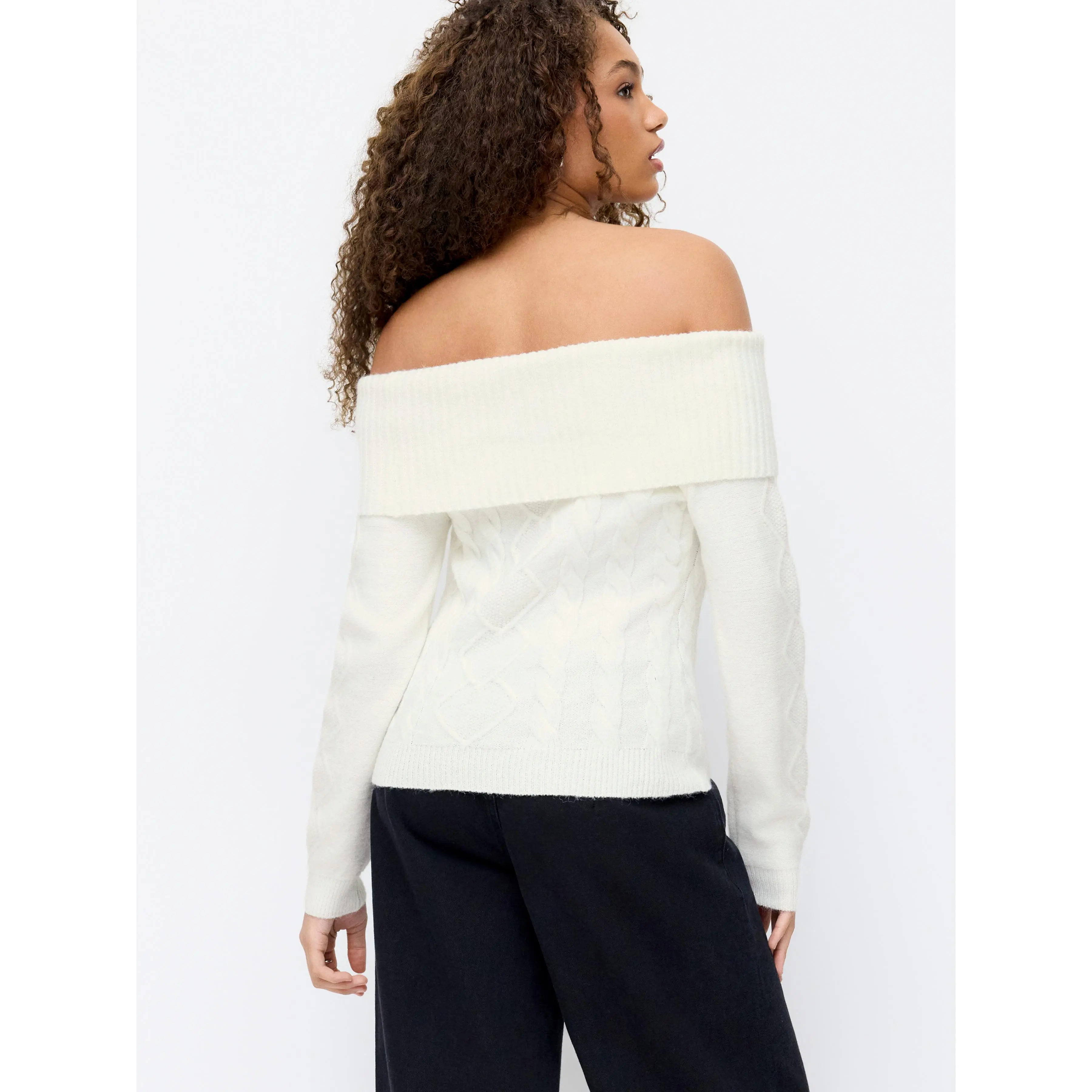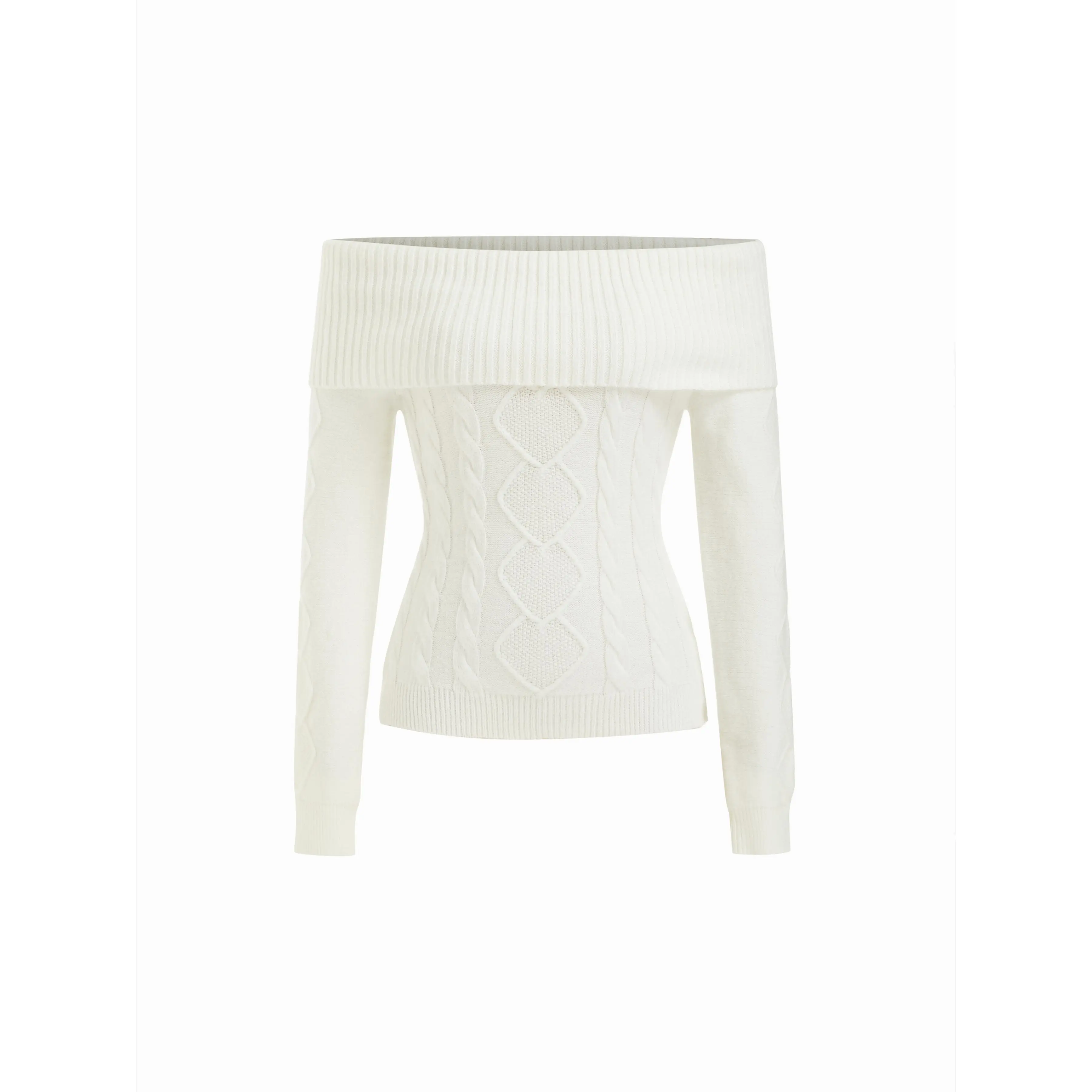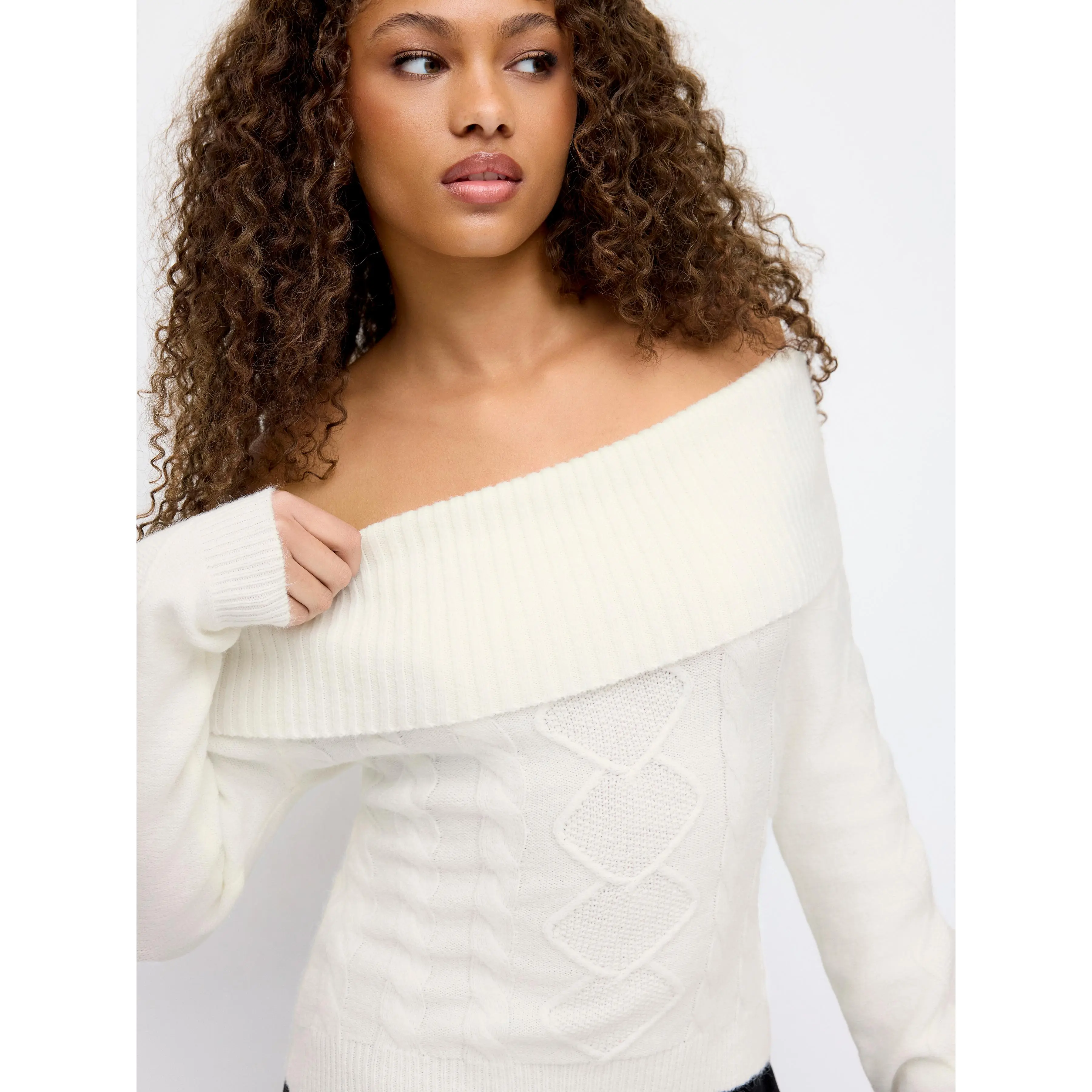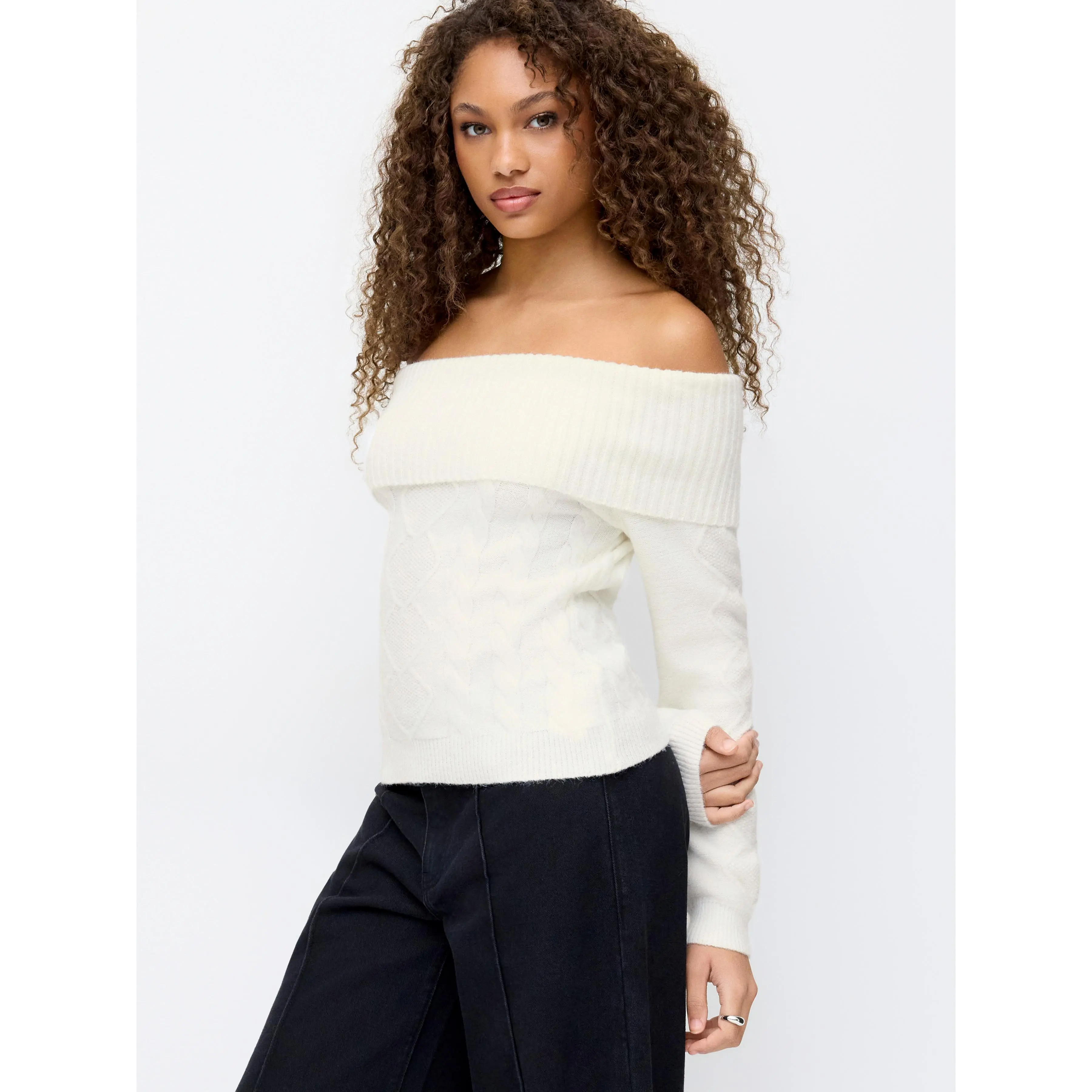 5. Cider Cable Knit Off-shoulder Long Sleeve Top