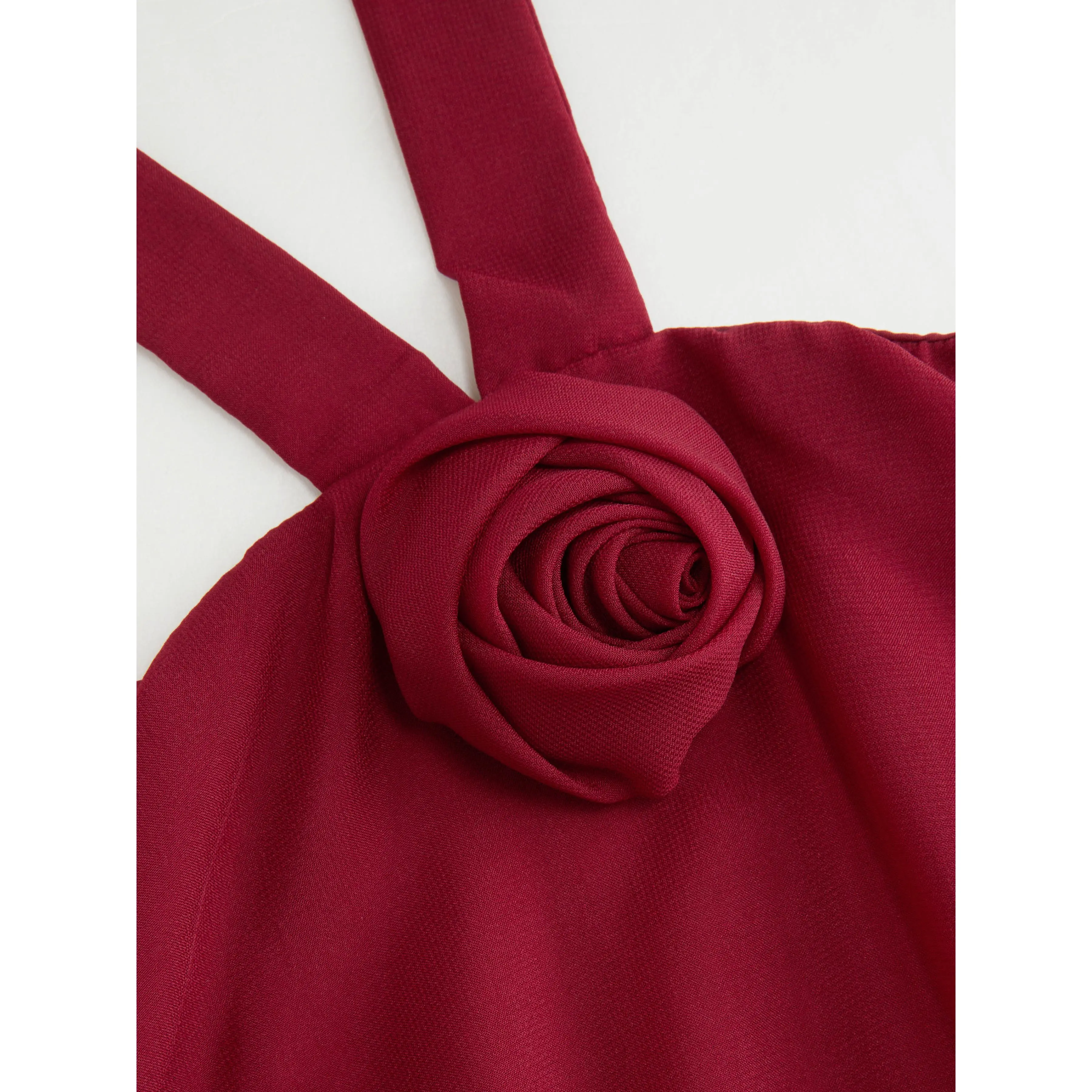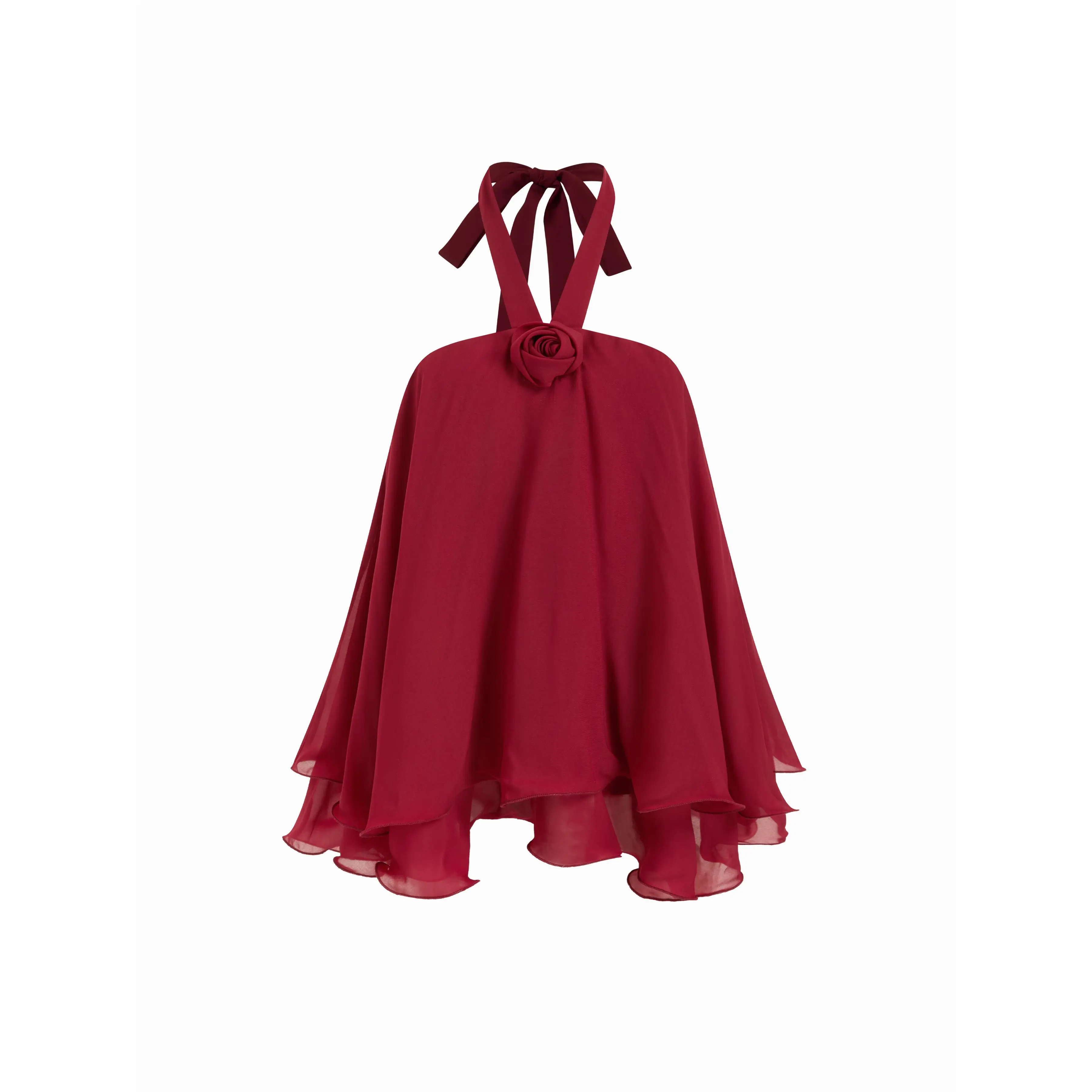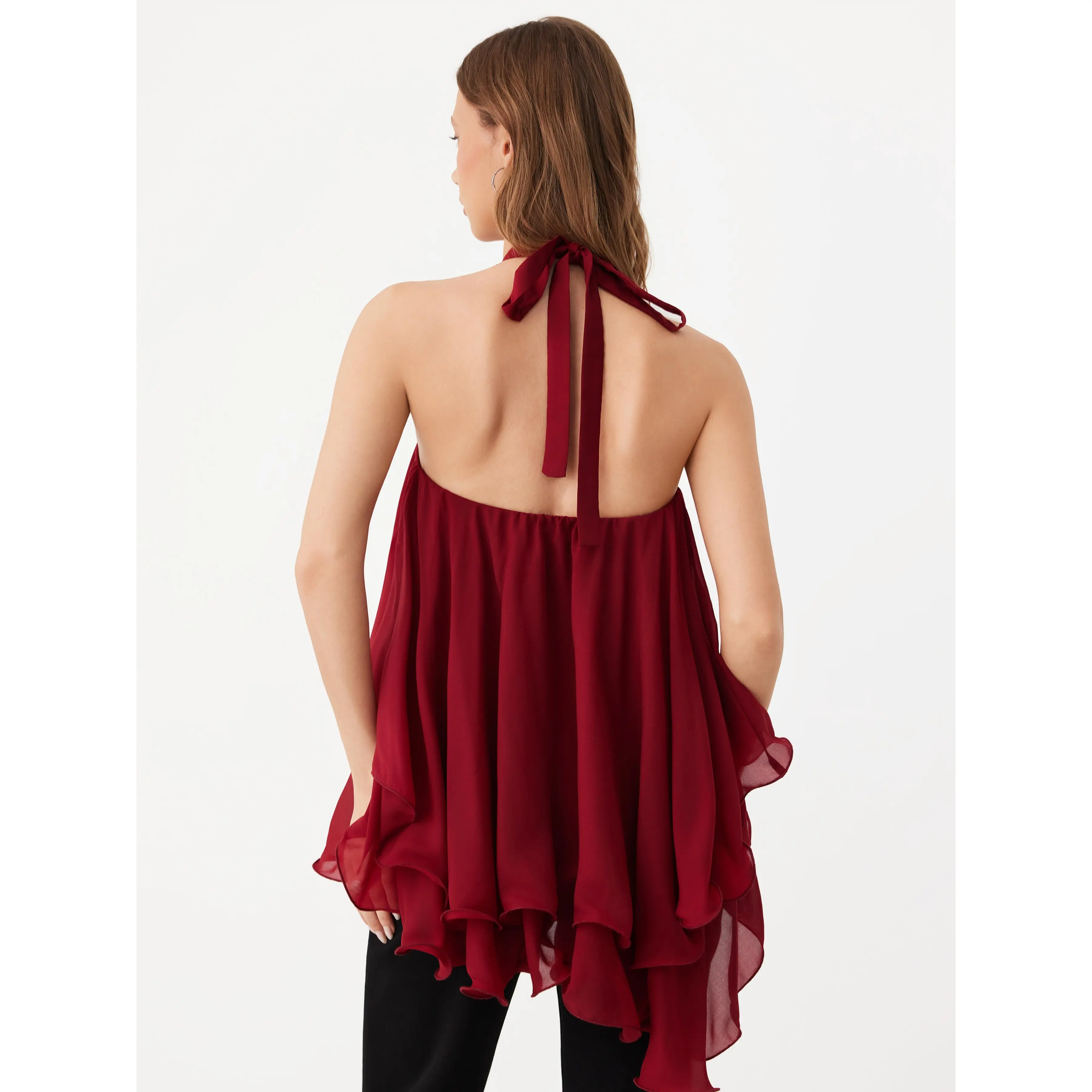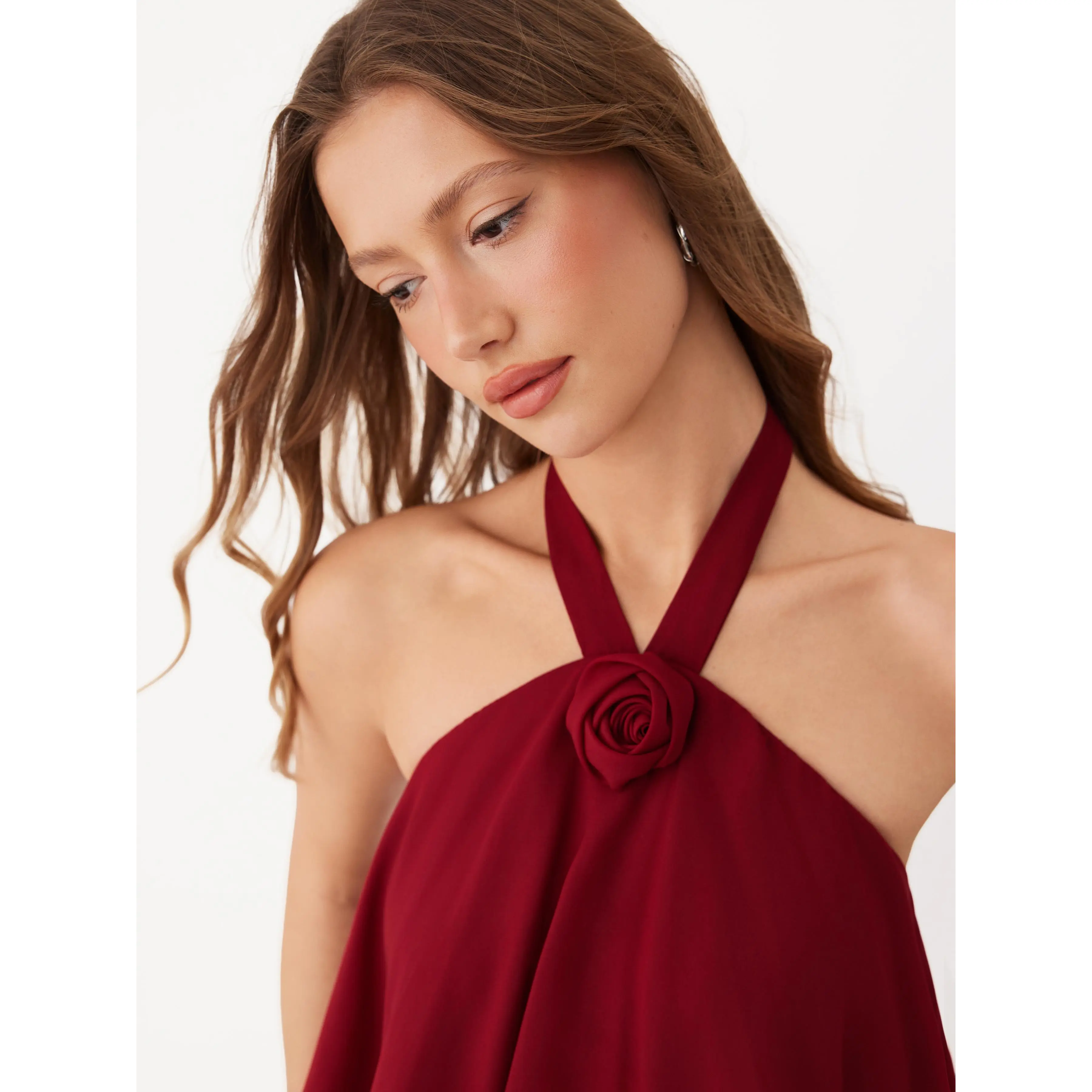 5. Cider Chiffon Halter Neck Rose Detail Ruffle Hem Oversized Blouse