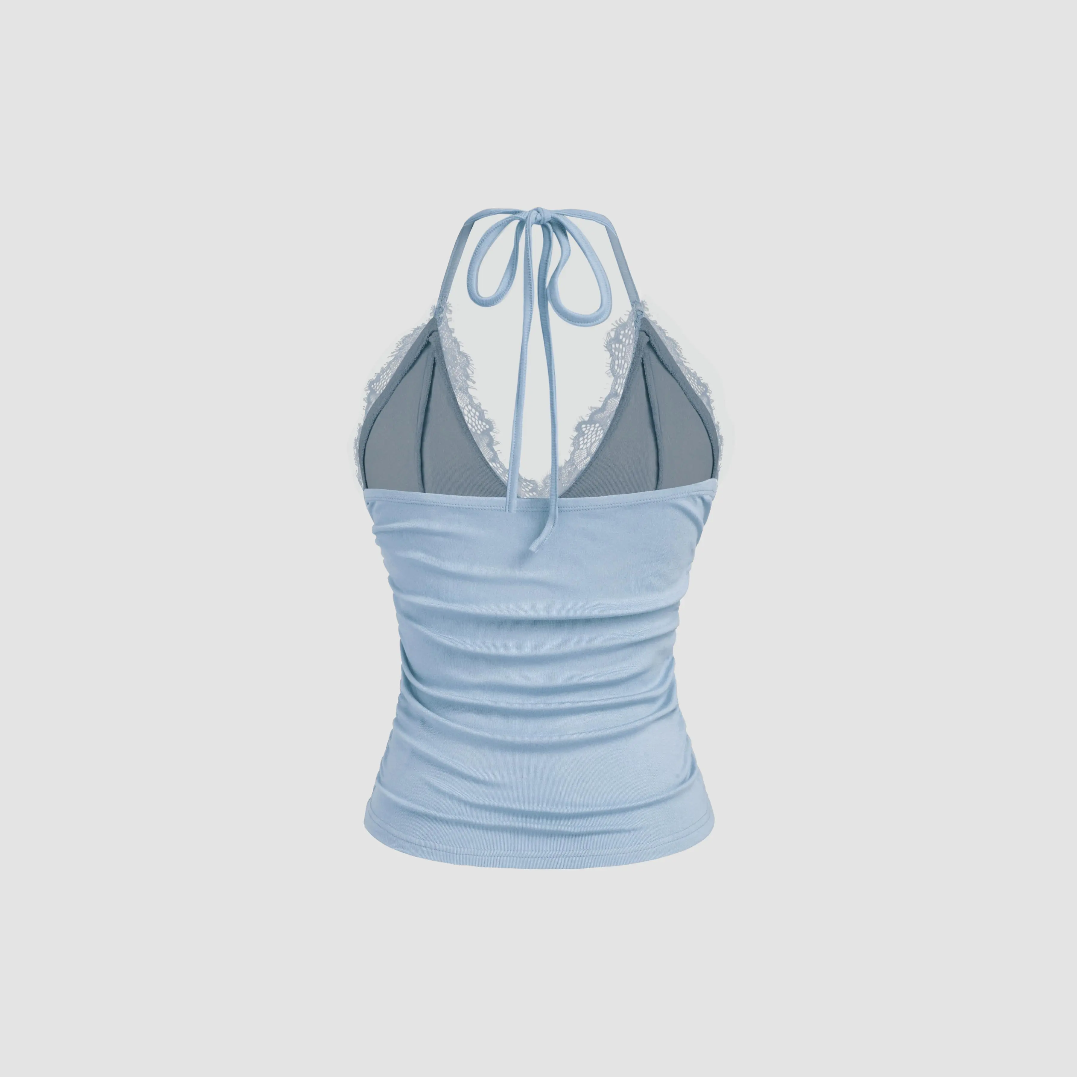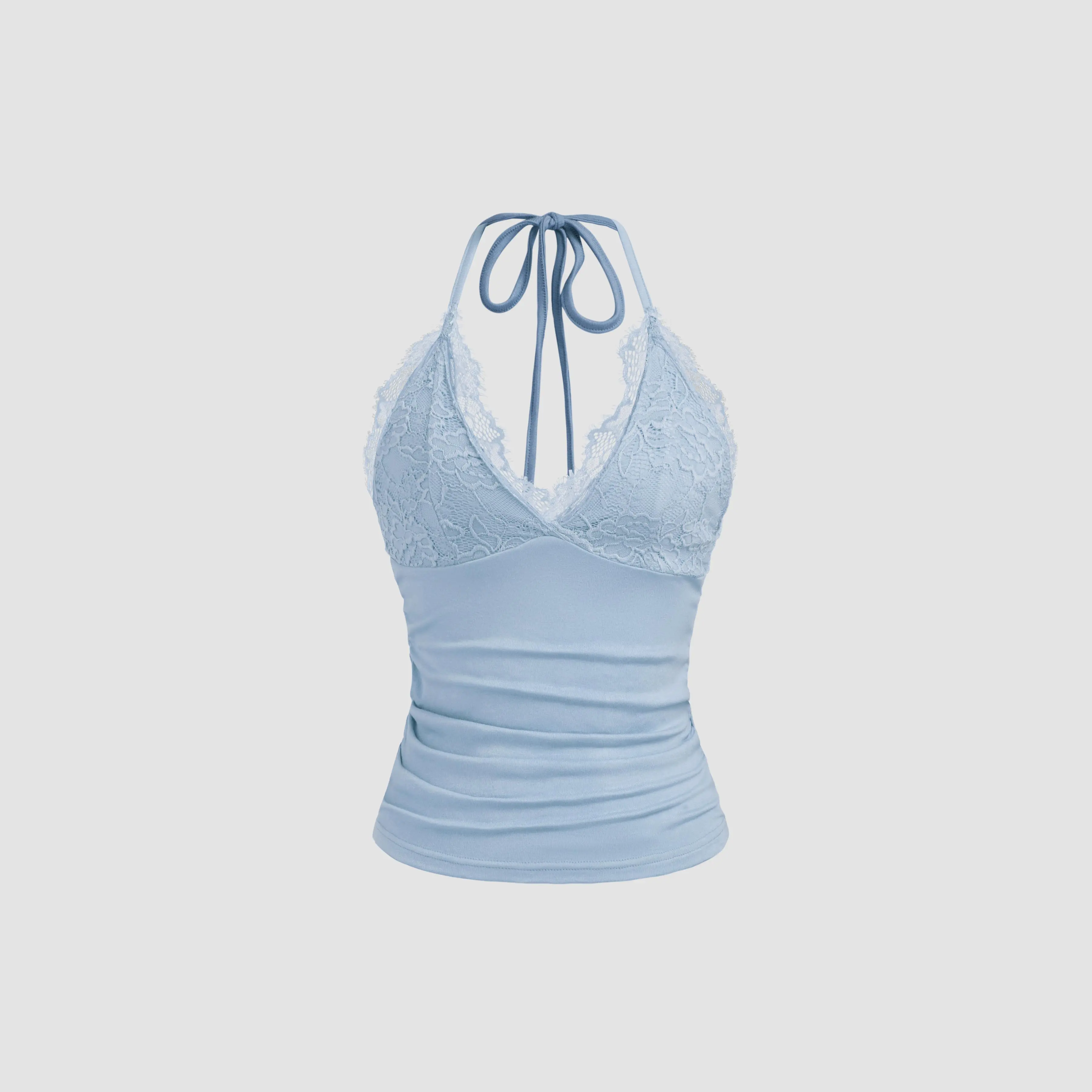 5. Cider [4 colors, size 0-10] Halter Backless Crop Top with Lace Trim