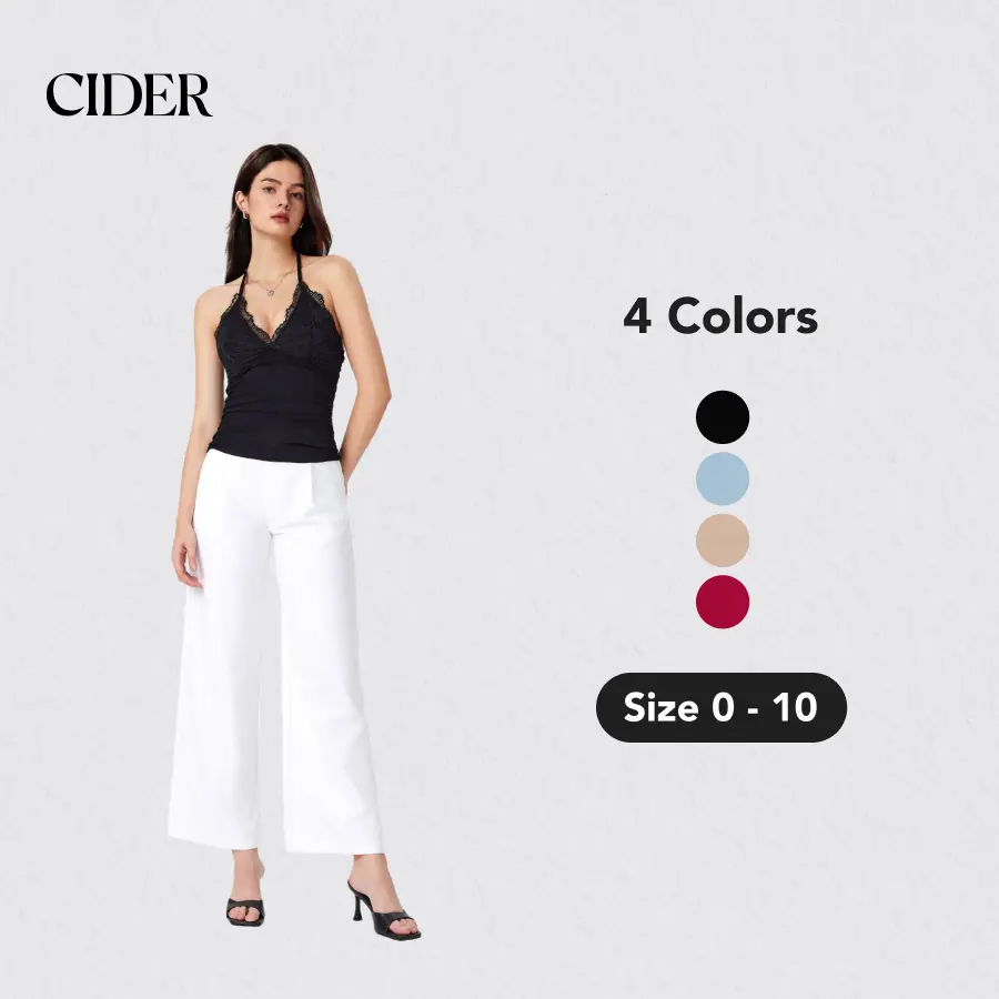 Cider [4 colors, size 0-10] Halter Backless Crop Top with Lace TrimCider [4 colors, size 0-10] Halter Backless Crop Top with Lace Trim