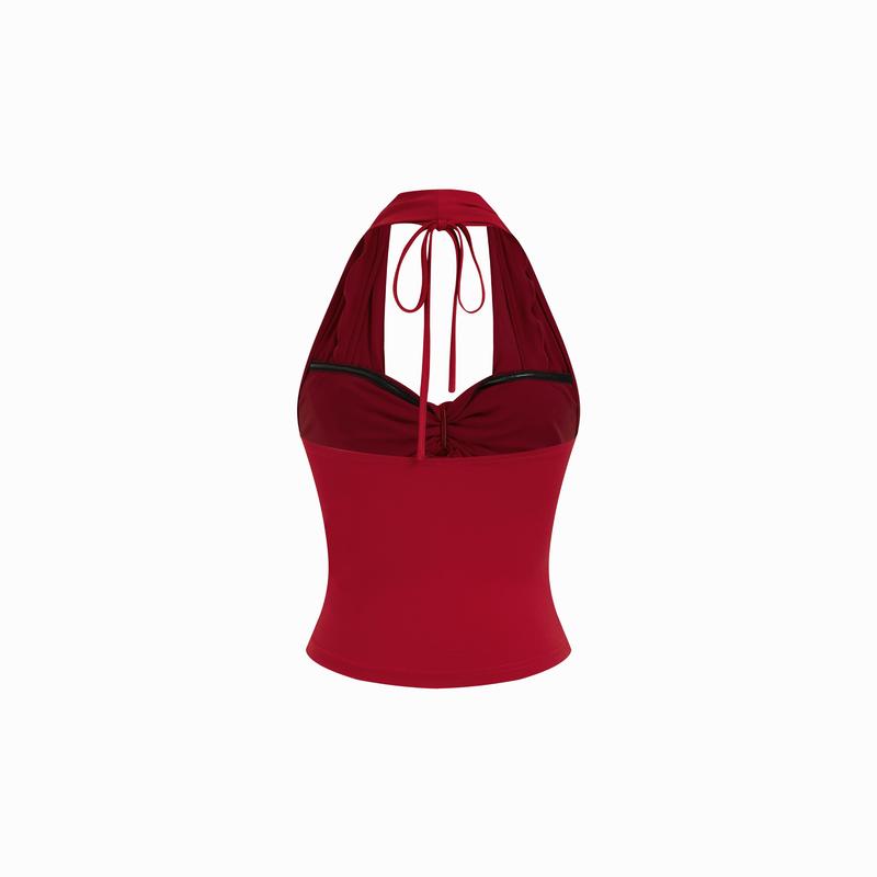 5. Cider Halter Neck Draped Ruched Top With Heart Detail