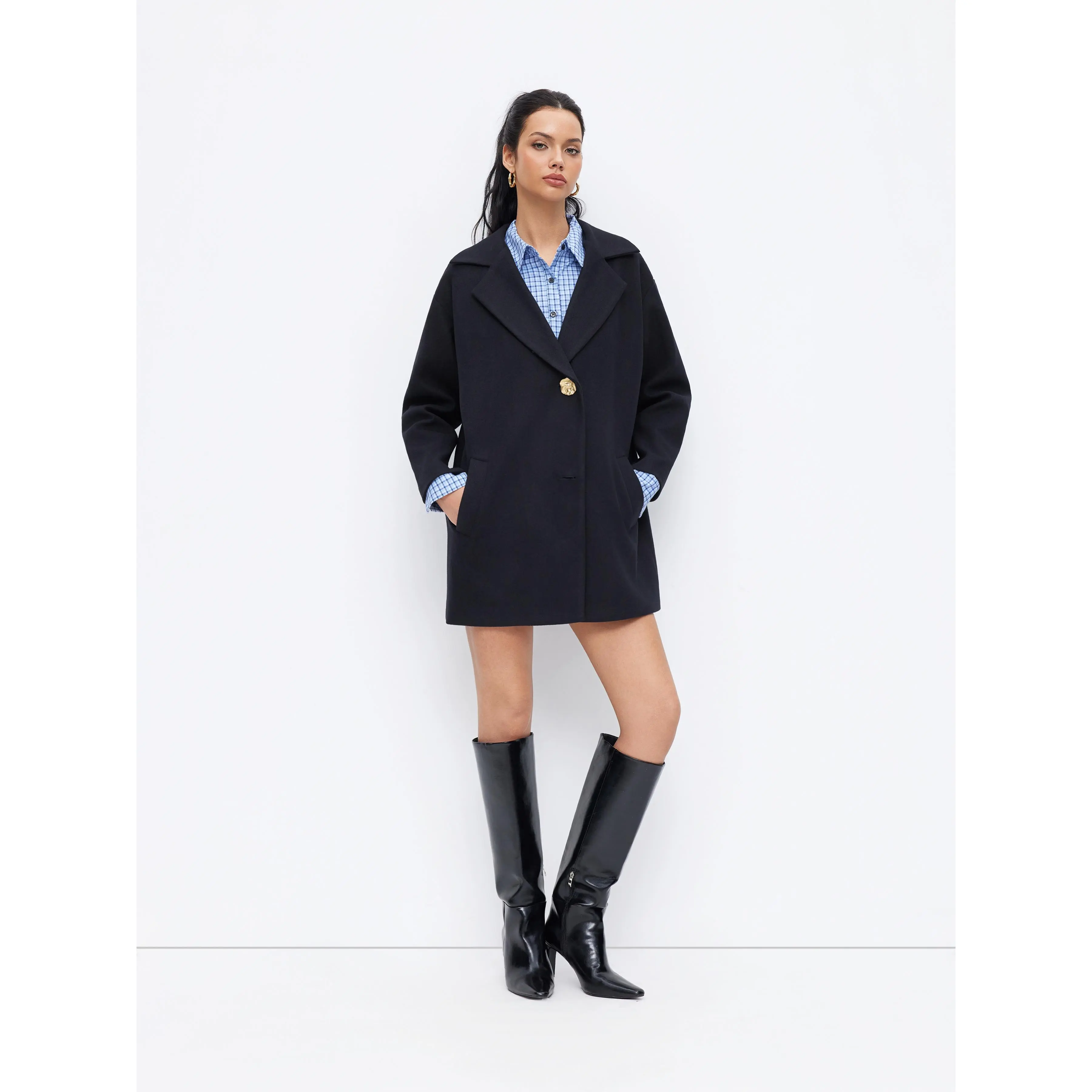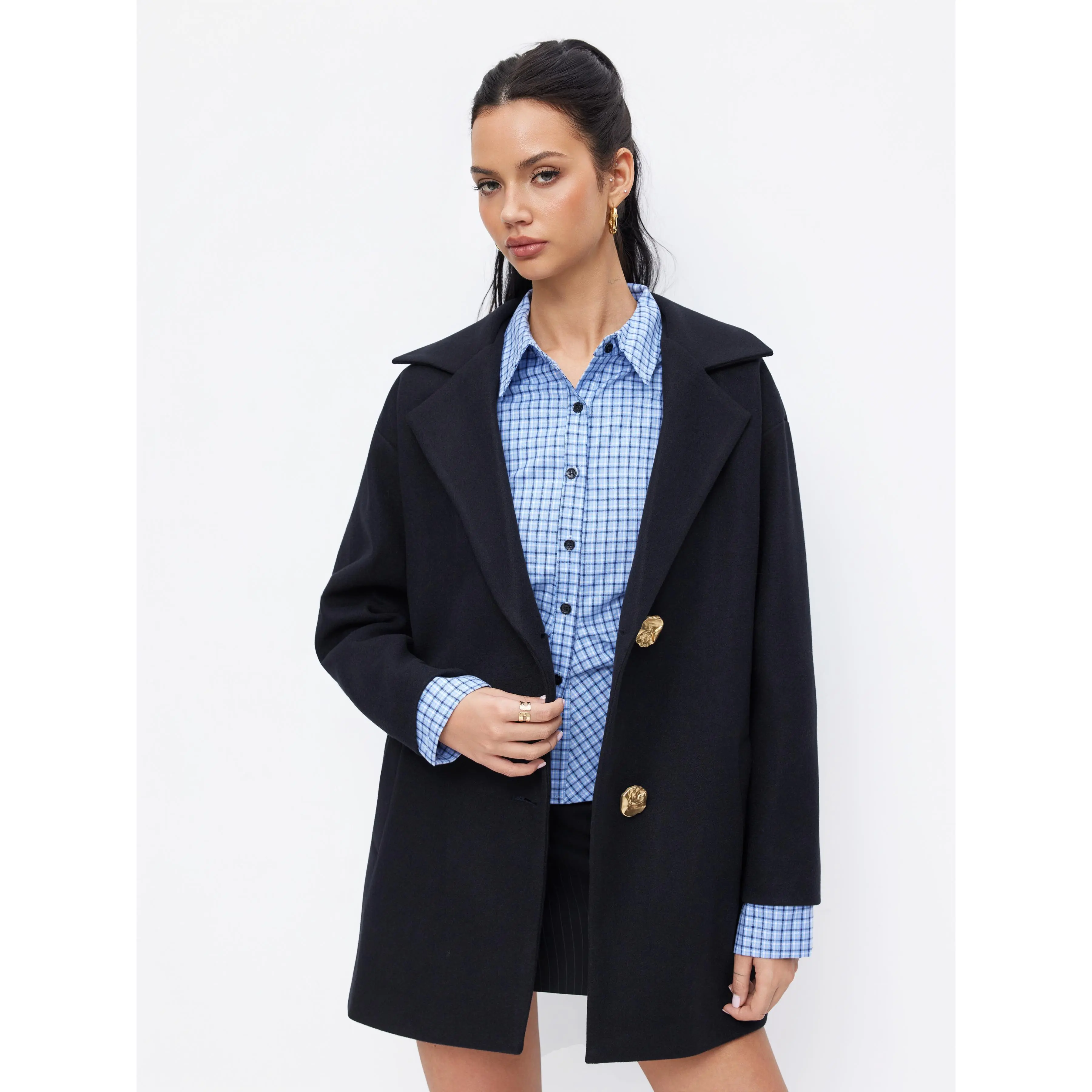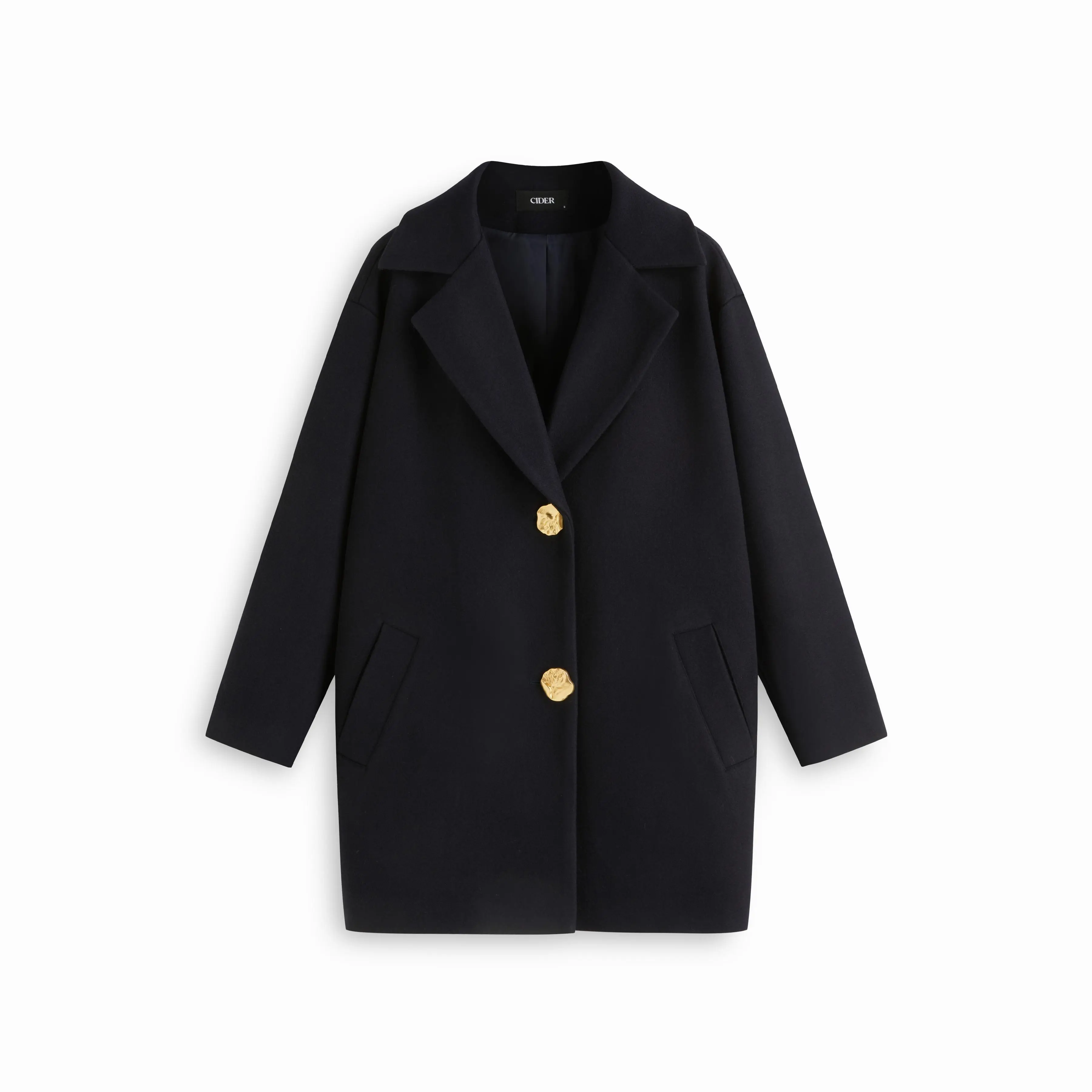 5. Cider Wool-Look Notched Collar Metal Button Oversized Coat