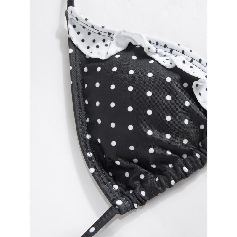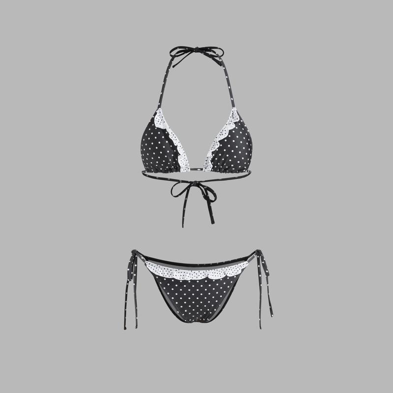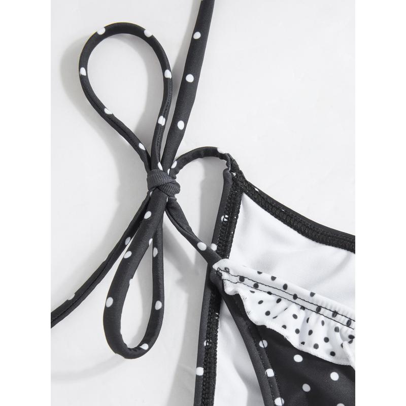 5. Cider Polka Dot Lettuce Trim Halter Tie Side Bikini Set