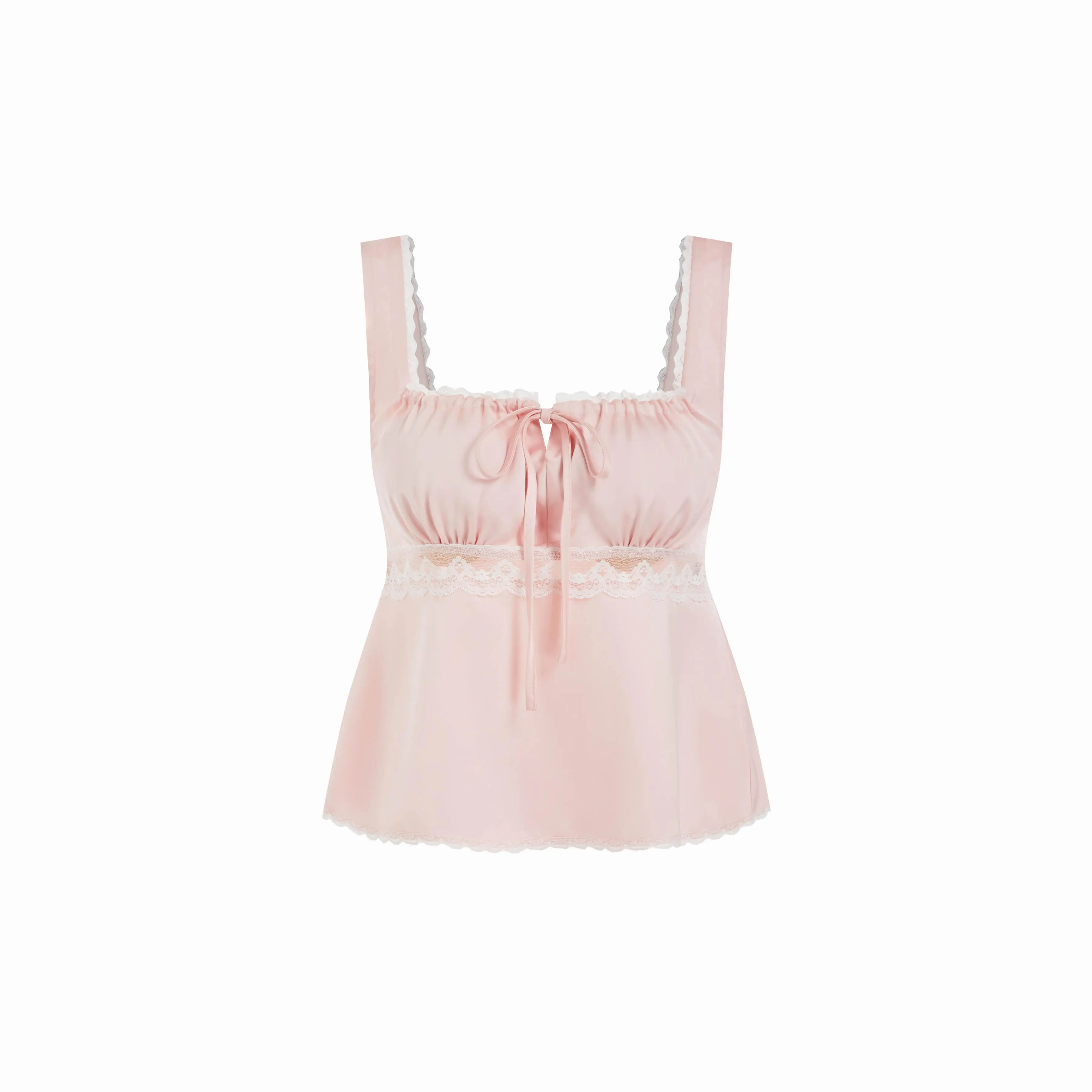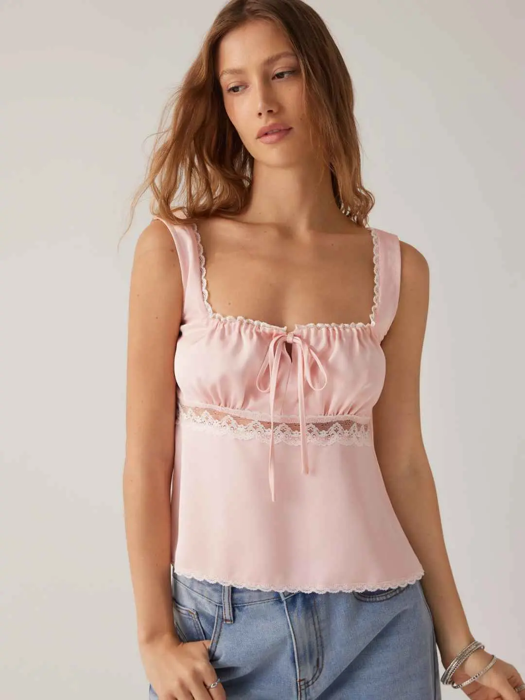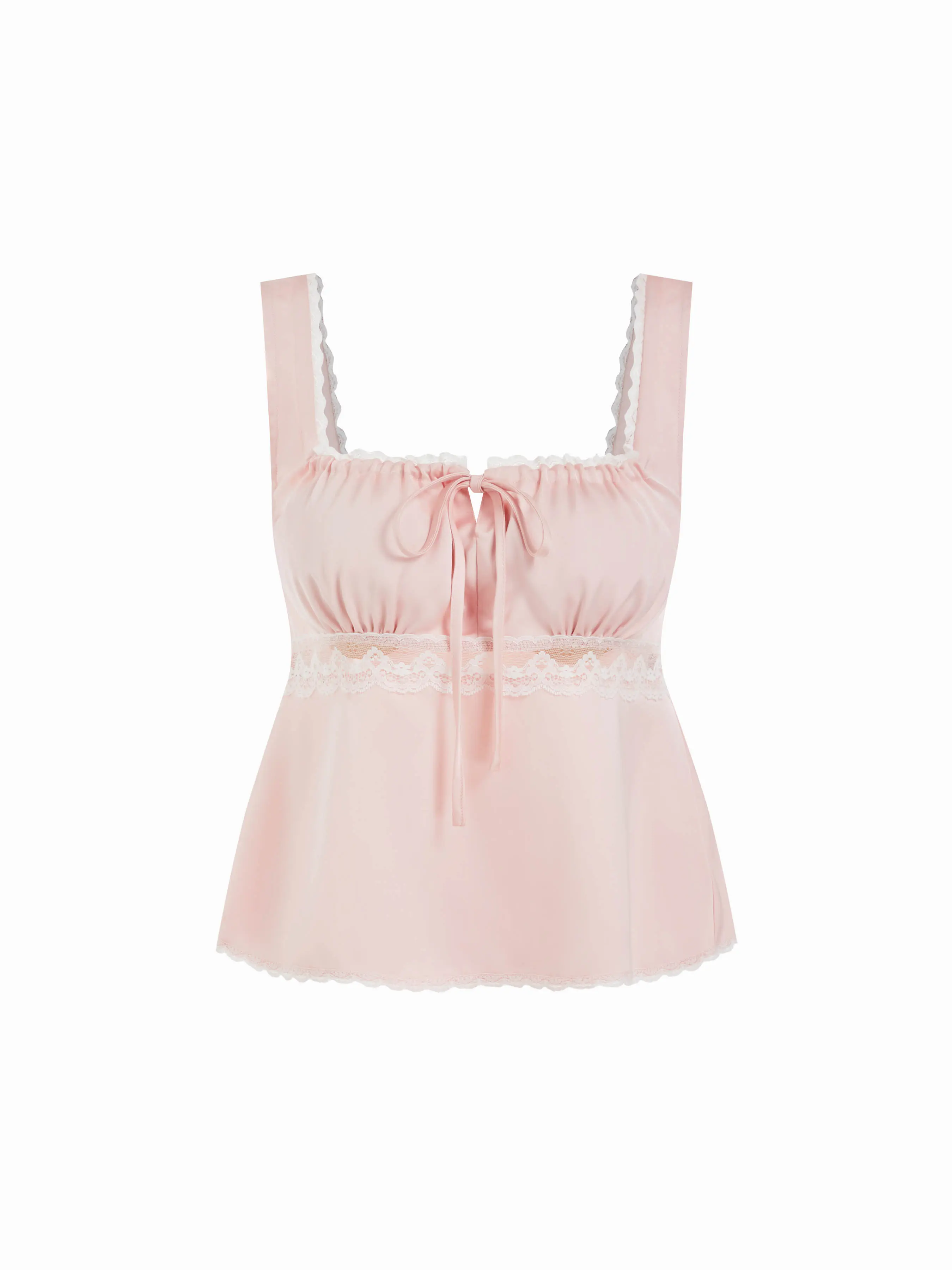 5. Cider Satin Square Neck Drawstring Lace Trim Tank Top