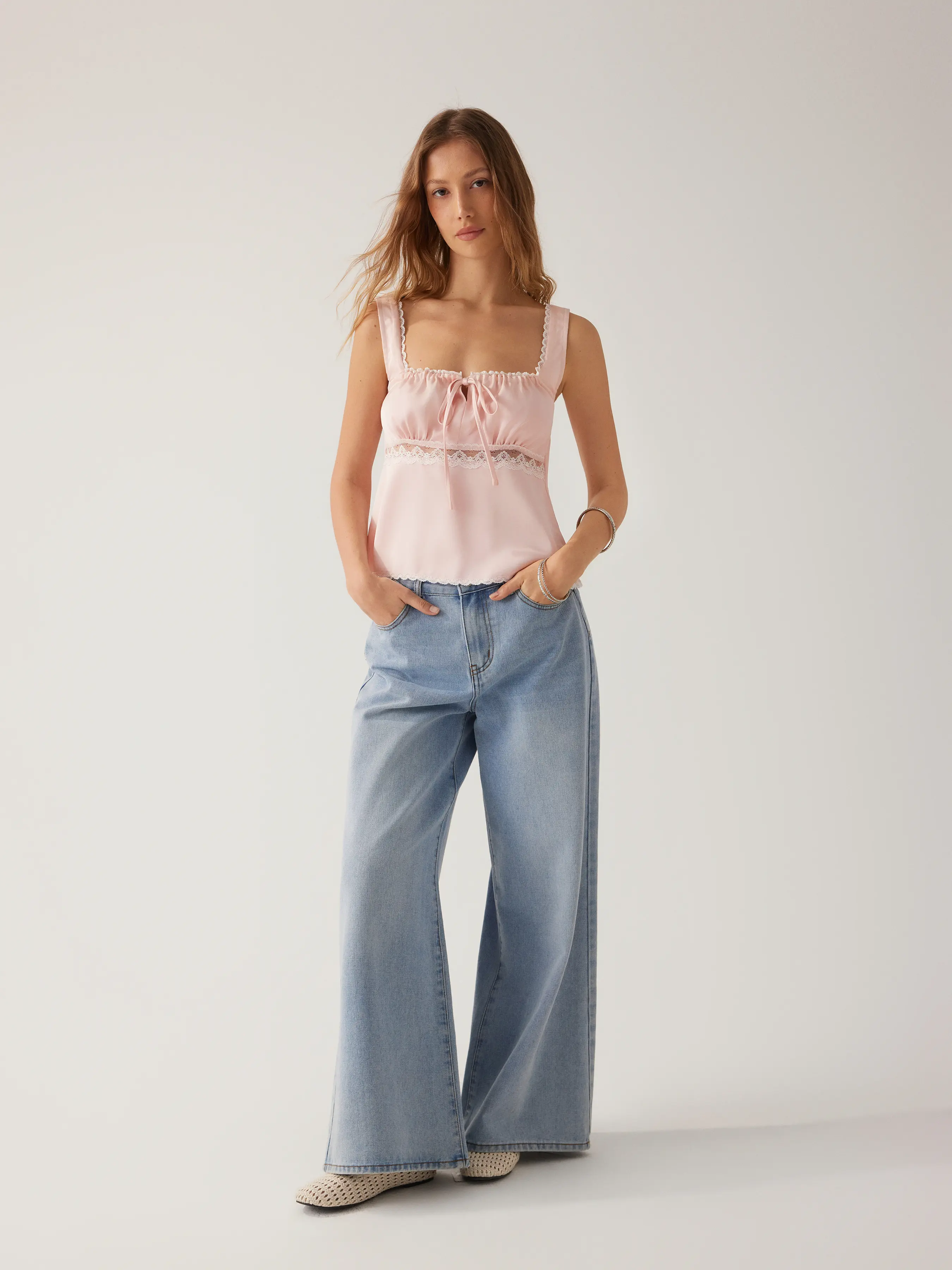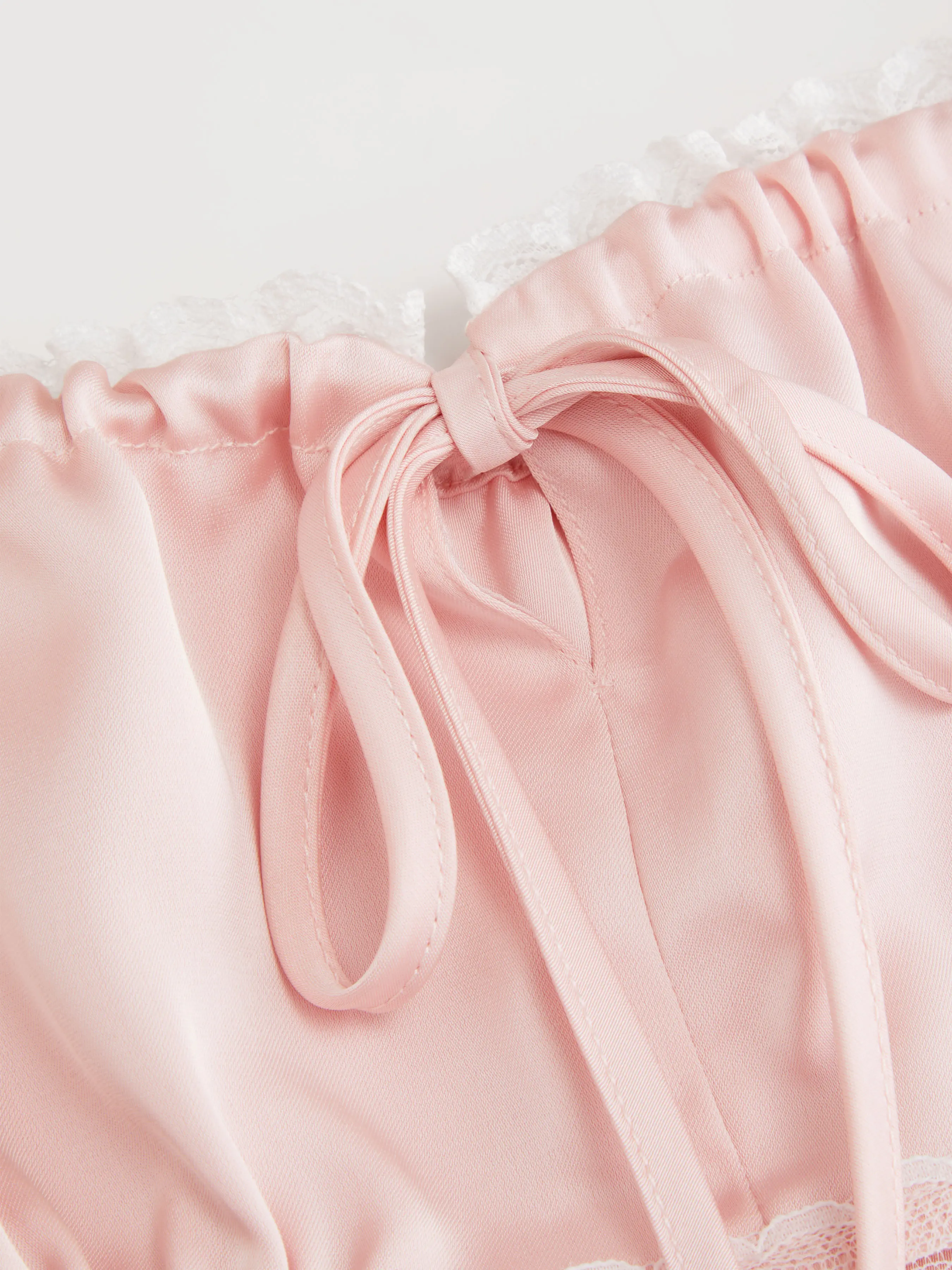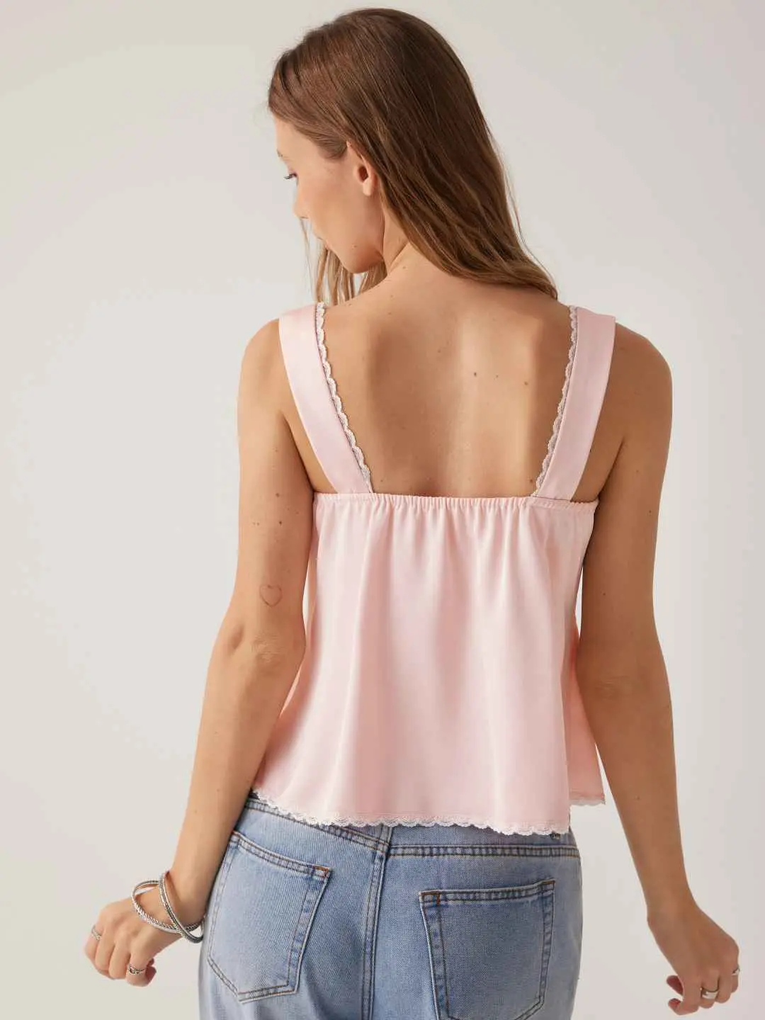 5. Cider Satin Square Neck Drawstring Lace Trim Tank Top