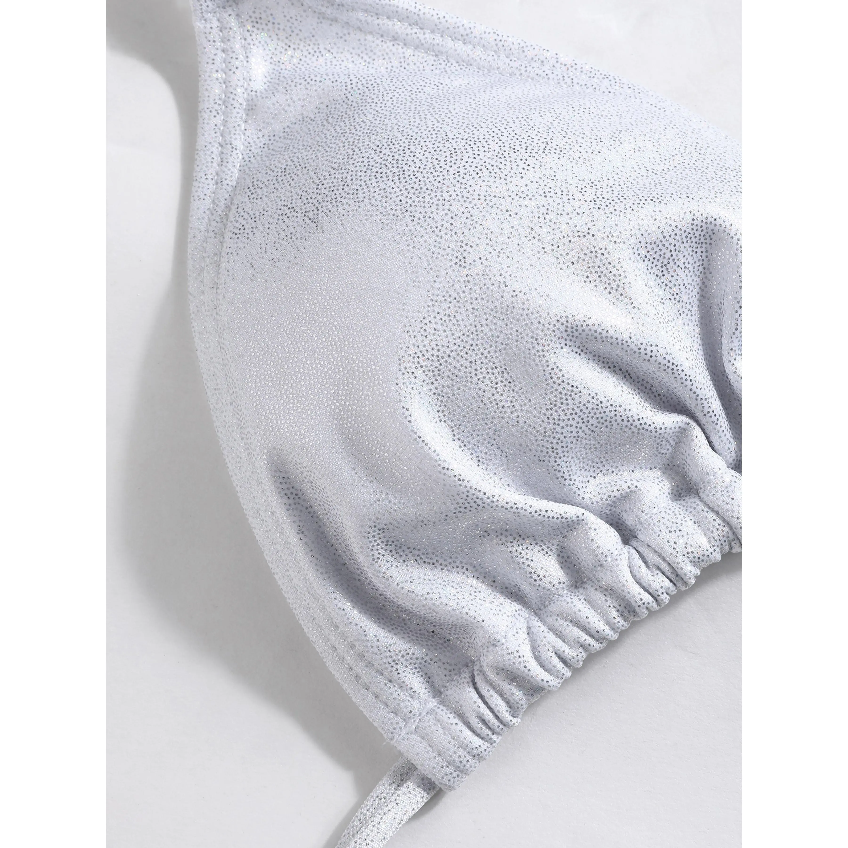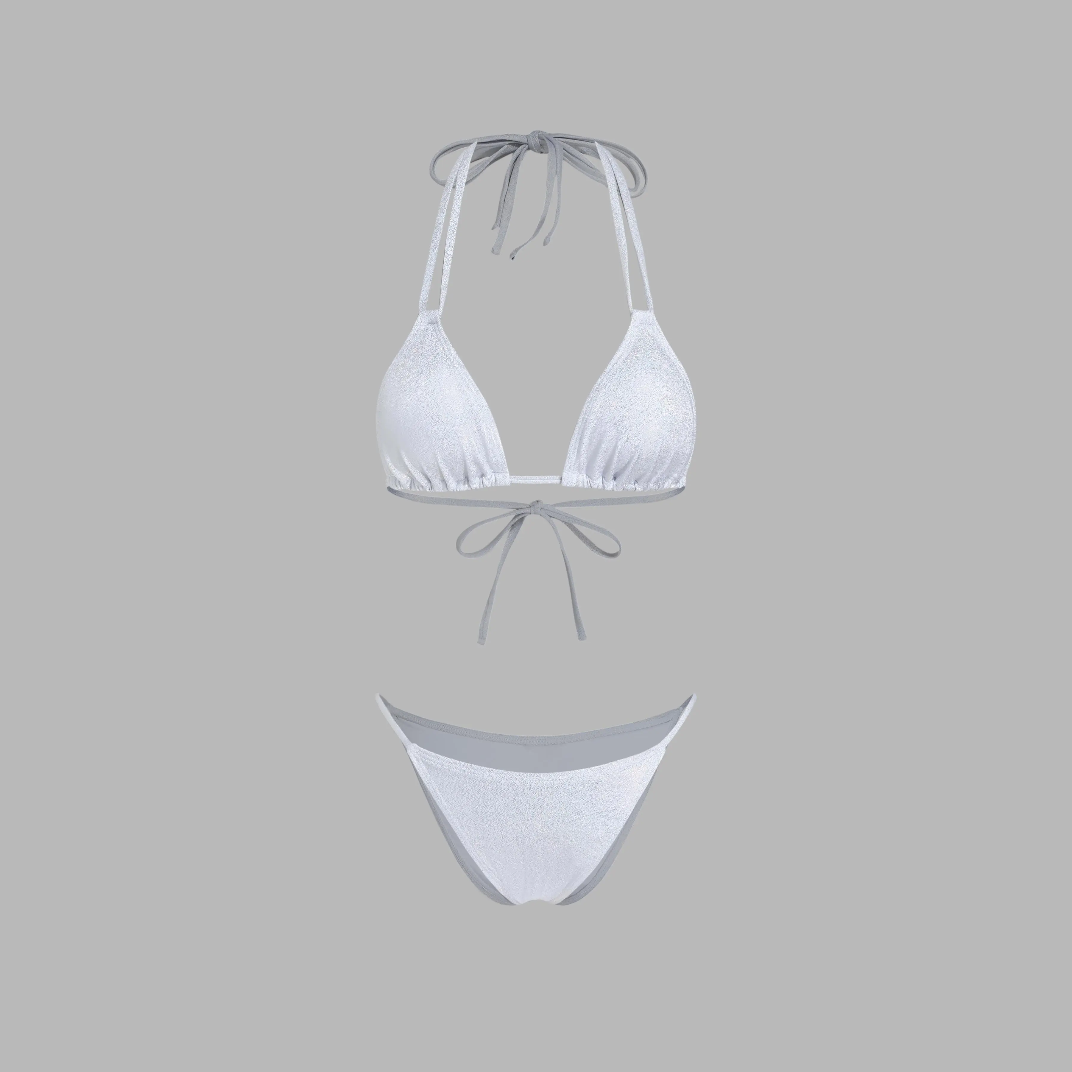 5. Cider Sequin Halter Neckline Knotted Triangle Thong Bikini Set