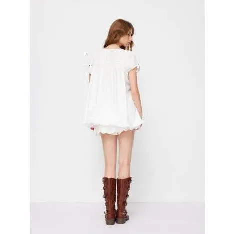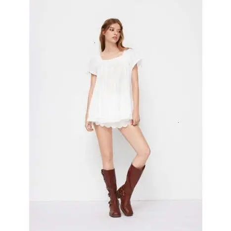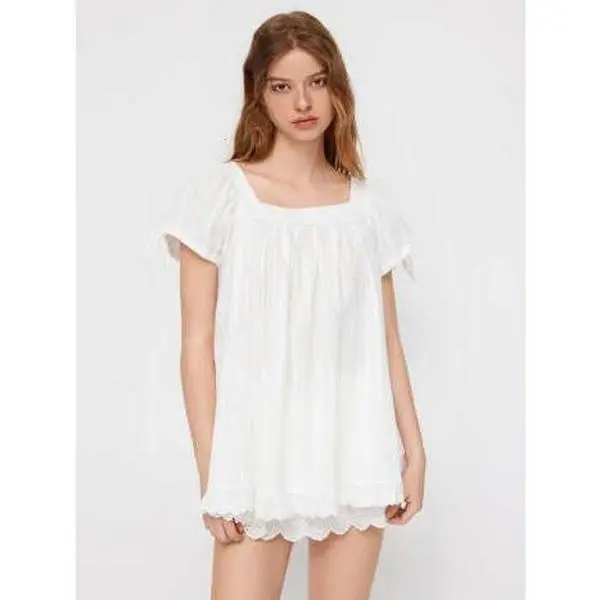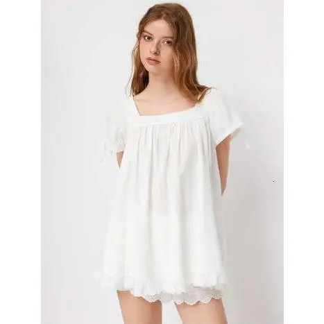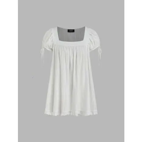 CIDER Square Neck Solid Ruffle Knotted Short Sleeve Blouse