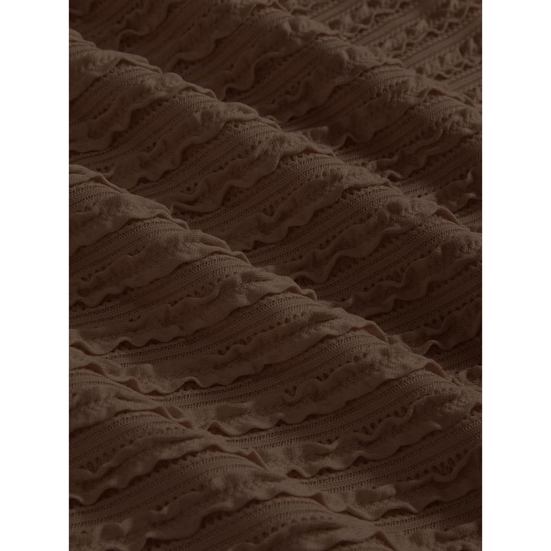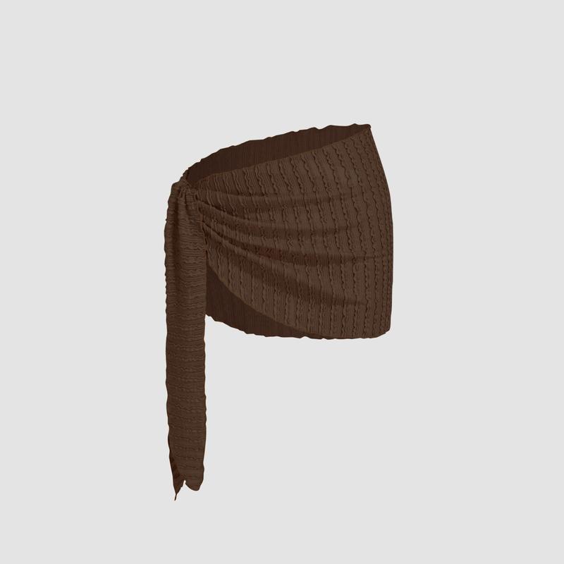 Cider Texture Halter Neckline Lettuce Trim Knotted Tankini Tie Side Bikini Set With Sarong
