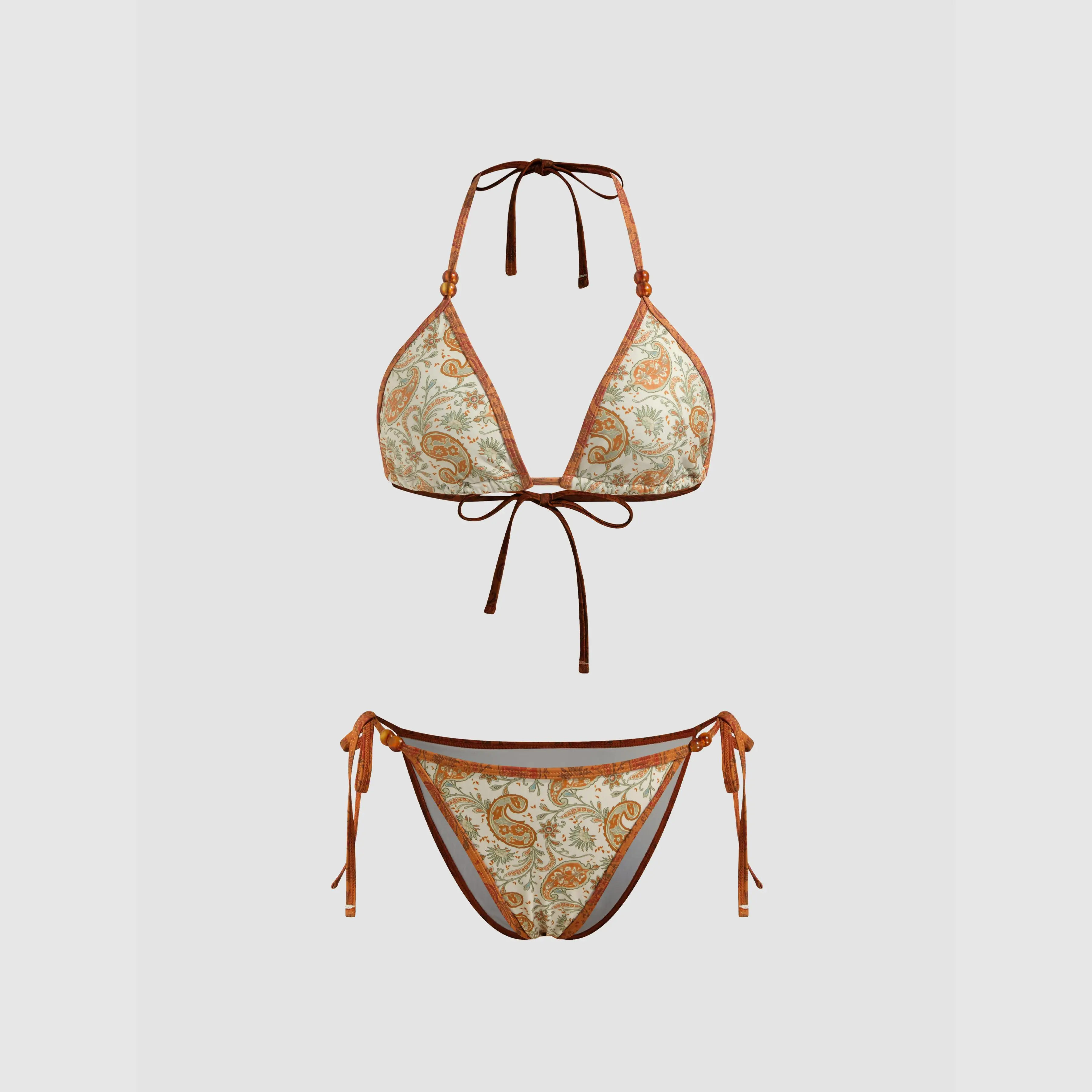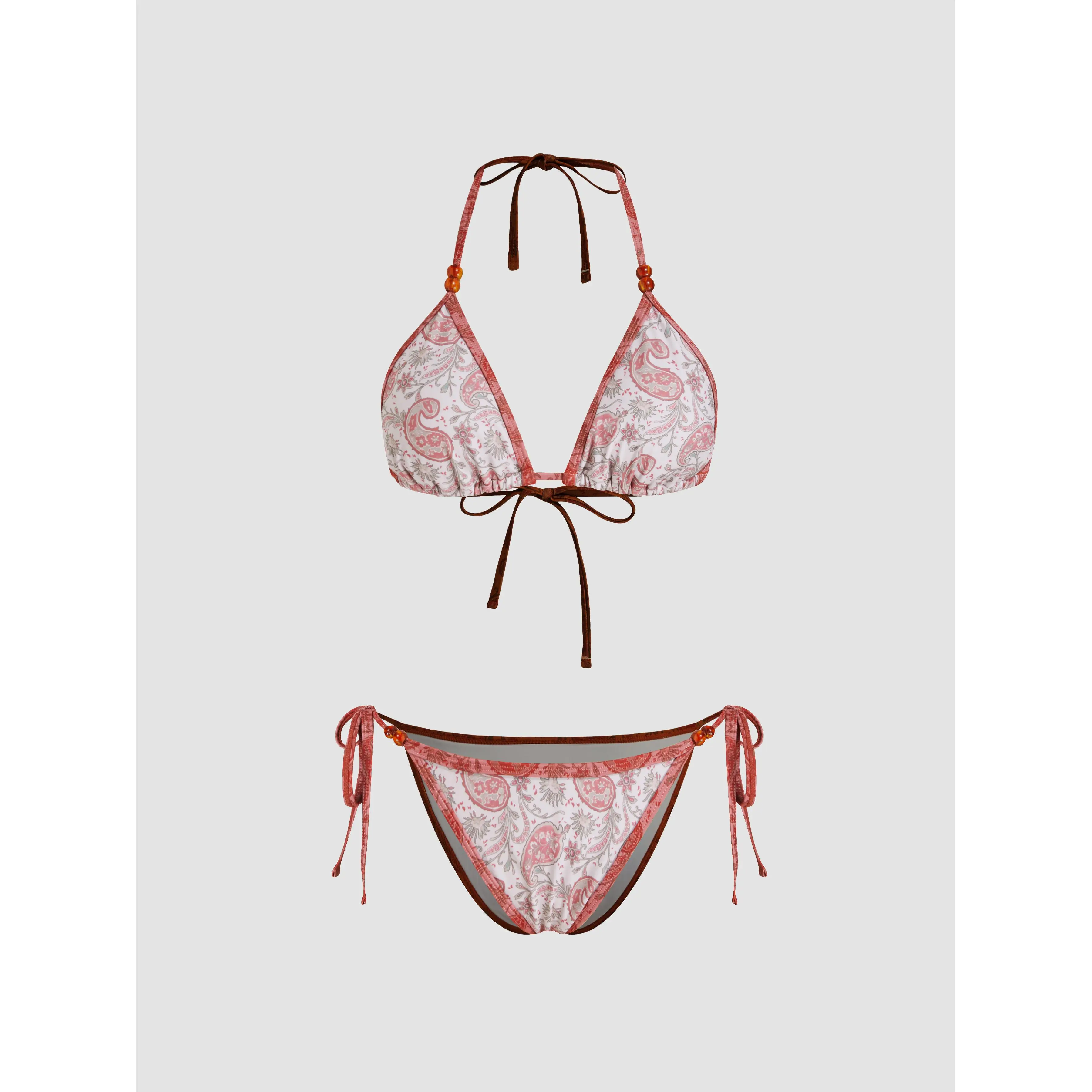 5. Cider V-neck Paisley Beaded Detail Triangle Bikini Set