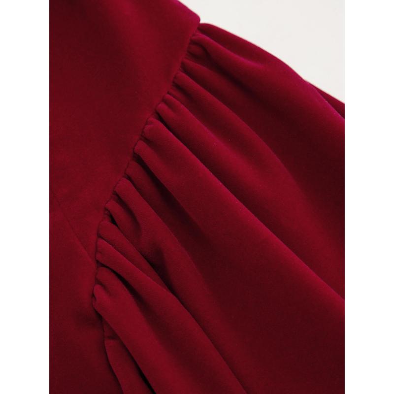 5. Cider Velvet Boat Neck Bowknot Bubble Hem Mini Dress