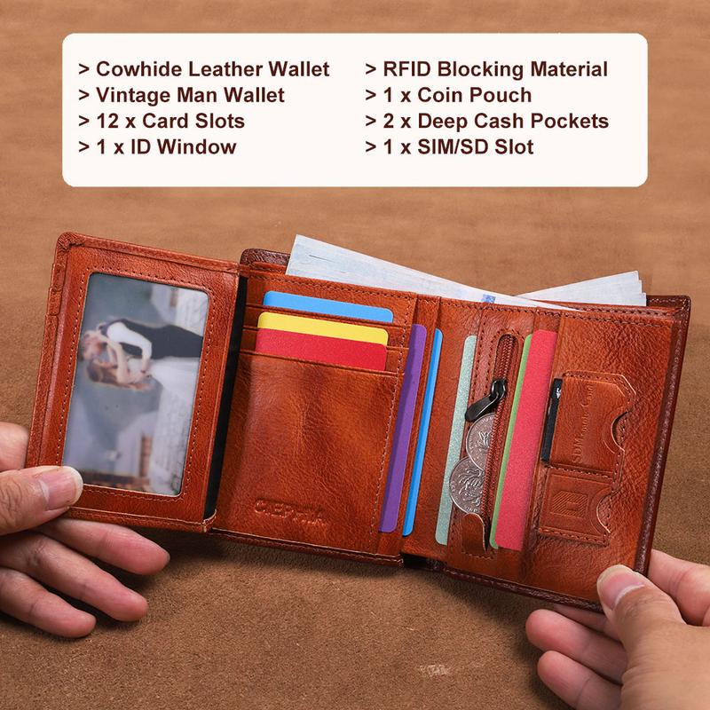 📱 CIEPHIA RFID Blocking Cowhide Leather Wallet