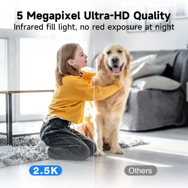 ✅ 2.5K Ultra HD Resolution for clear monitoring. Capture every detail in your home, perfect for monitoring children, pets, or valuables. The camera offers 3K video quality through infrared night vision, ensuring you never miss a moment, whether day or night.