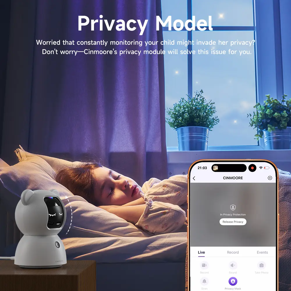 ✅ 360° Horizontal Rotation & 110° Vertical Tilt eliminate blind spots. Use the CINMOORE app to remotely control the camera's view and monitor every corner of your home in real-time. Stay connected and secure from any angle.