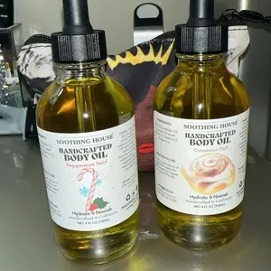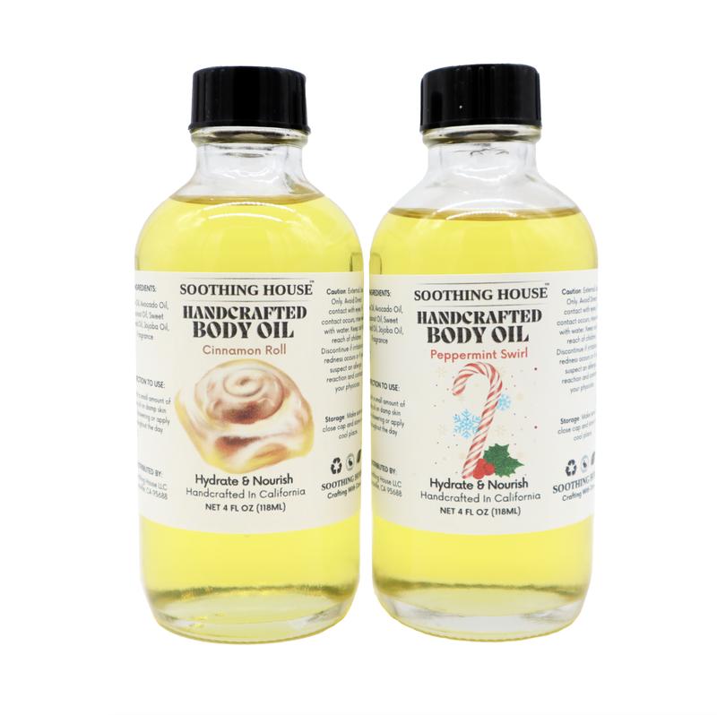 Celebrate the season with our exclusive Christmas Body Oil Bundle, pairing the invigorating Peppermint Swirl and cozy Cinnamon Roll body oils. This luxurious bundle is handcrafted with premium, skin-loving oils—jojoba, sweet almond, avocado, and olive—to deeply nourish and moisturize, leaving your skin with a beautiful holiday glow. Perfect for gifting or for treating yourself to festive self-care!