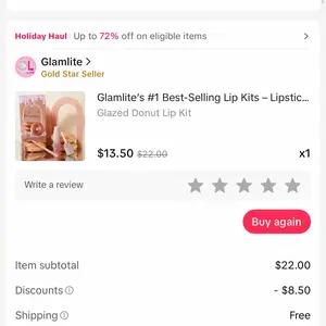 This lip kit is absolutely stunning and smells amazing! The color of each item pairs beautifully and they smell delicious. The gloss is so gorgeous! Oh and once again, Glamlite knows great packaging! Love it all!