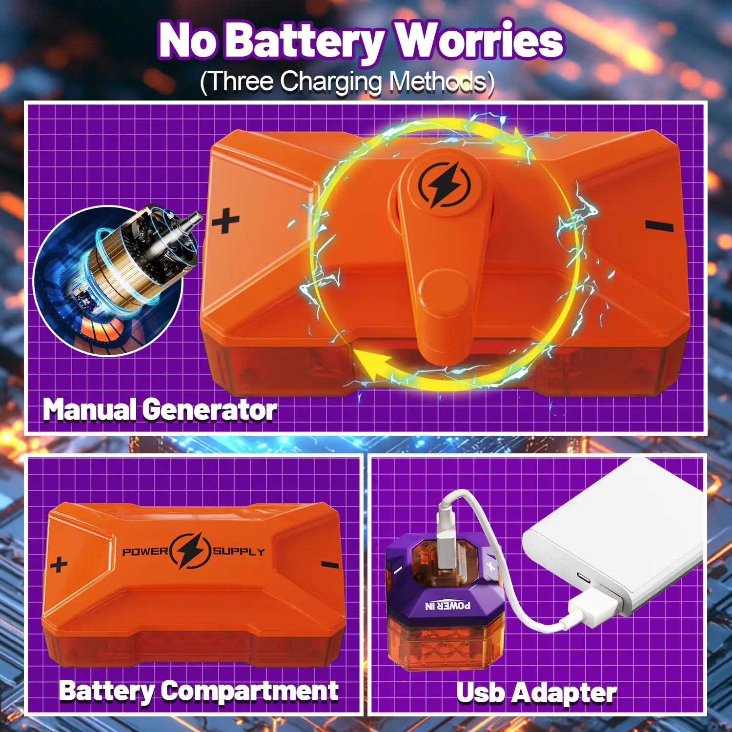 ·【76 Fun & Educational STEM Experiments】 Explore the exciting world of electricity with this complete science kit for kids! It includes 25 easy snap-together components—like a fan, RGB LED lights, and a flying saucer—to create 64 engaging science experiments for kids. Perfect as STEM kits for kids age 6-8, this set introduces electrical concepts safely, with no soldering or tools required.