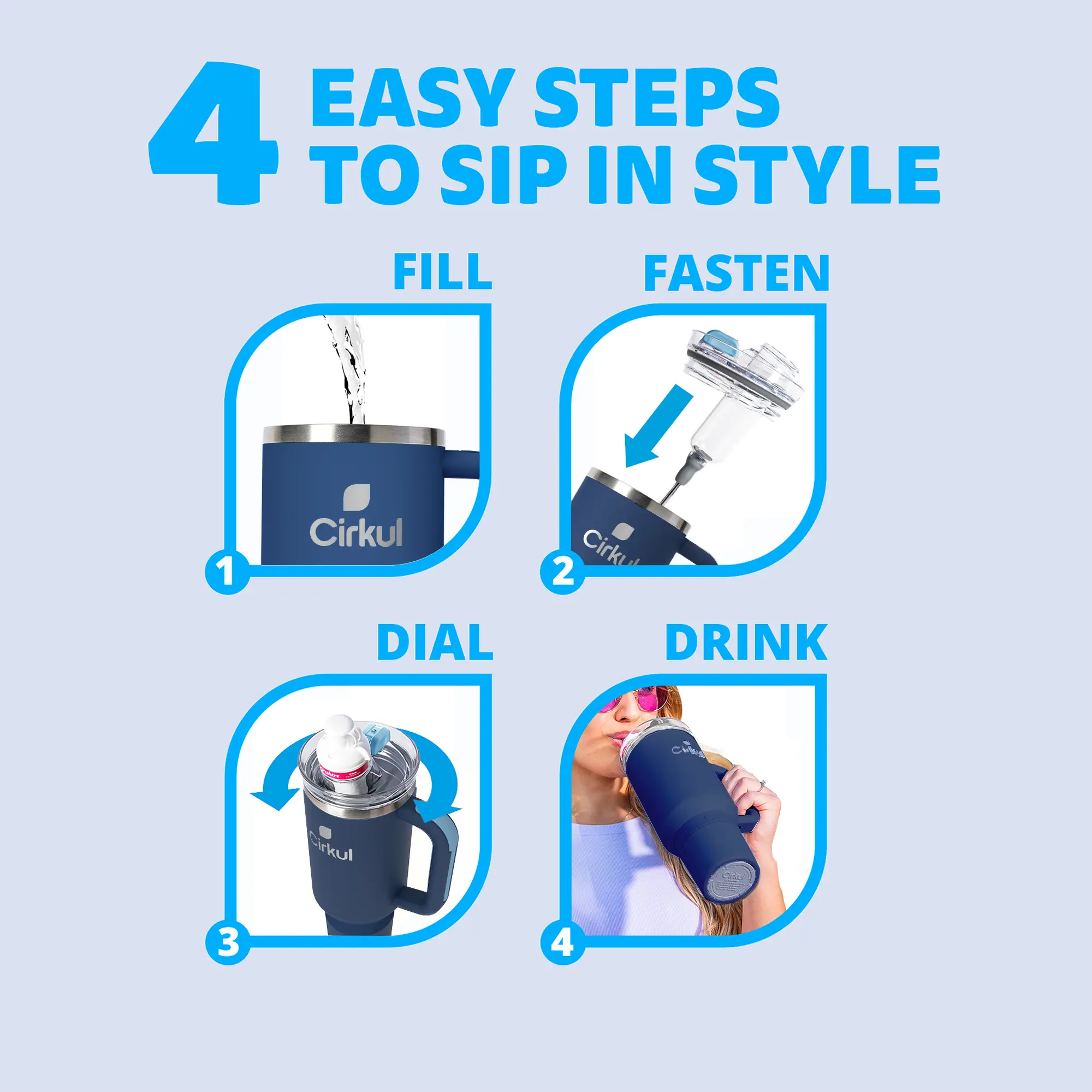 Discover Cirkul's 40oz. Midnight Blue All-Day StrawSip Tumbler Starter Kit