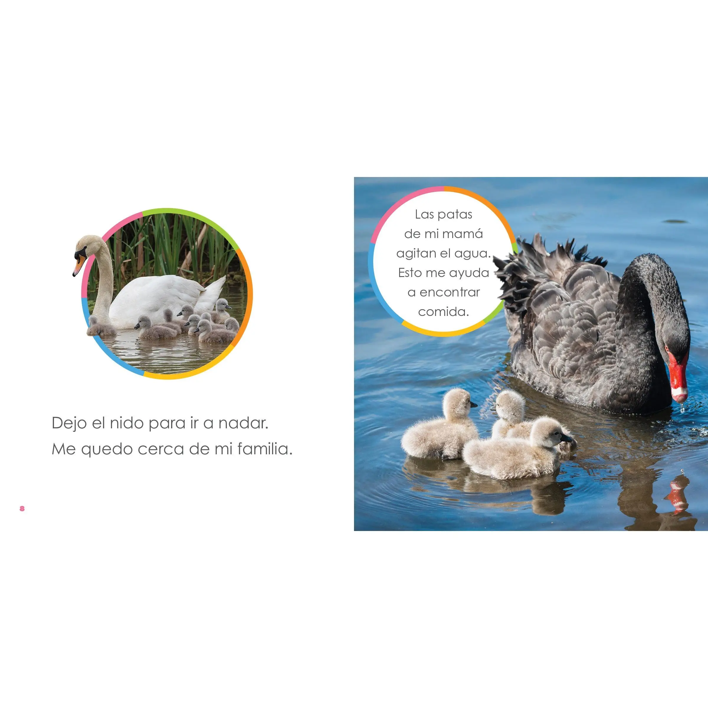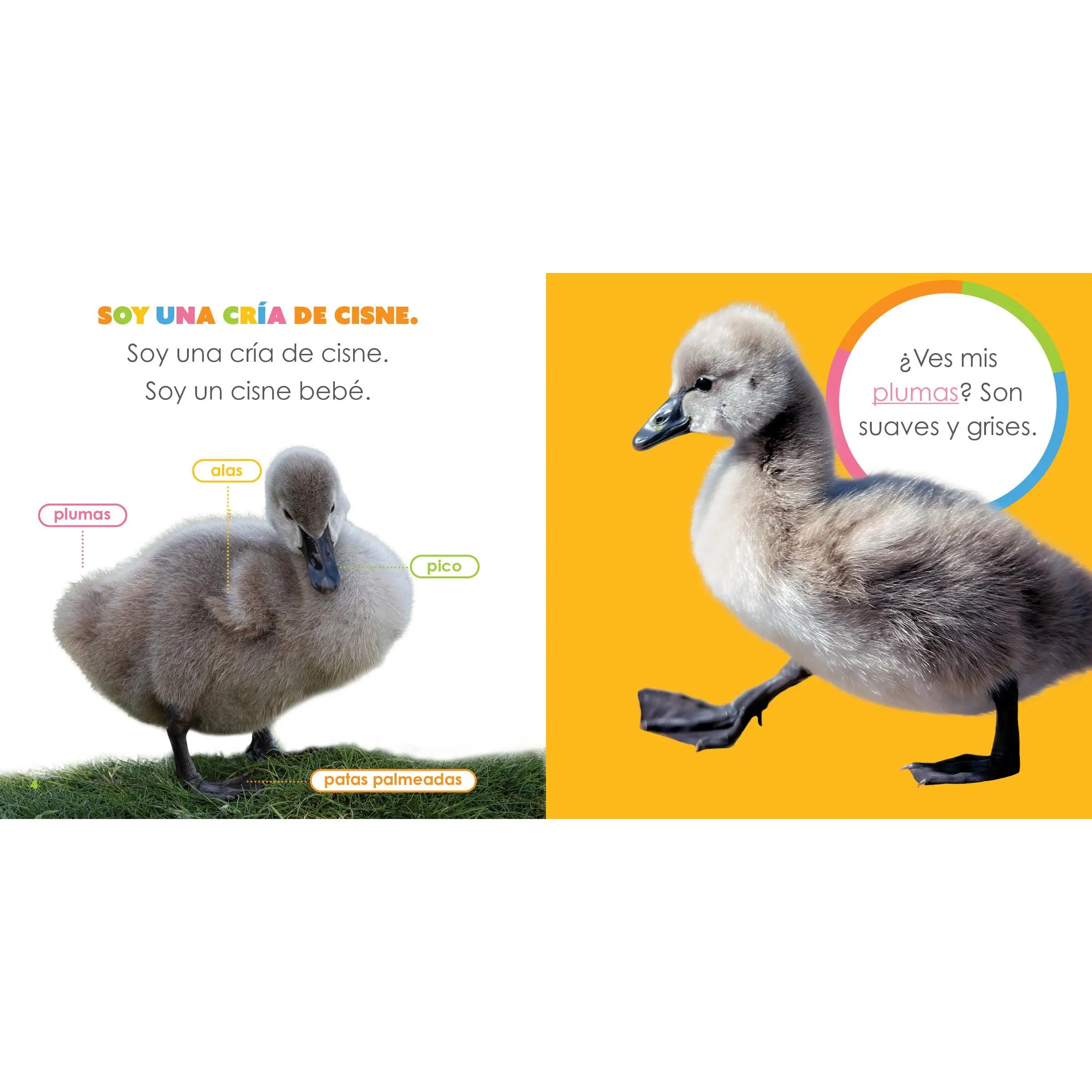 Start down the road to the captivating, webbed world of baby swans! Through the lens of a curious child, this life science book from Creative Education’s Starting Out series is a visual treat for beginning readers, featuring vivid bird photographs and a labeled animal diagram that adds fun and excitement to learning. In the “Make a Noise” section, kids can even engage by mimicking sounds of these graceful waterfowl. Simple North American Spanish text and an easy-to-use glossary help inspire a lifelong passion for discovery and knowledge.