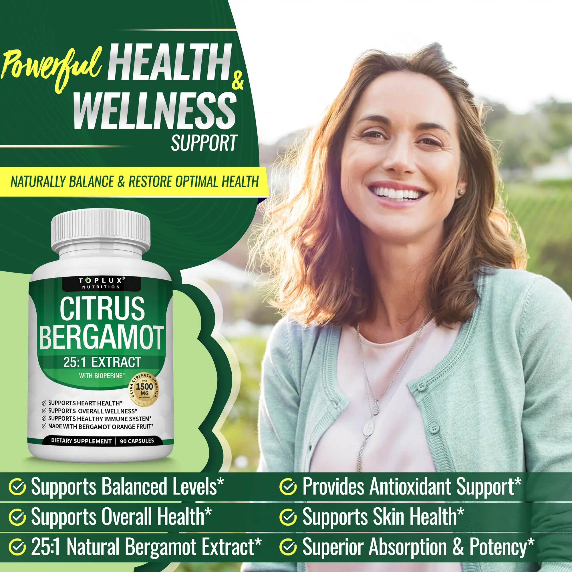 ·Premium Quality: We source our bergamot fruit from the US and manufacture our supplements under strict quality control standards to ensure purity and potency.