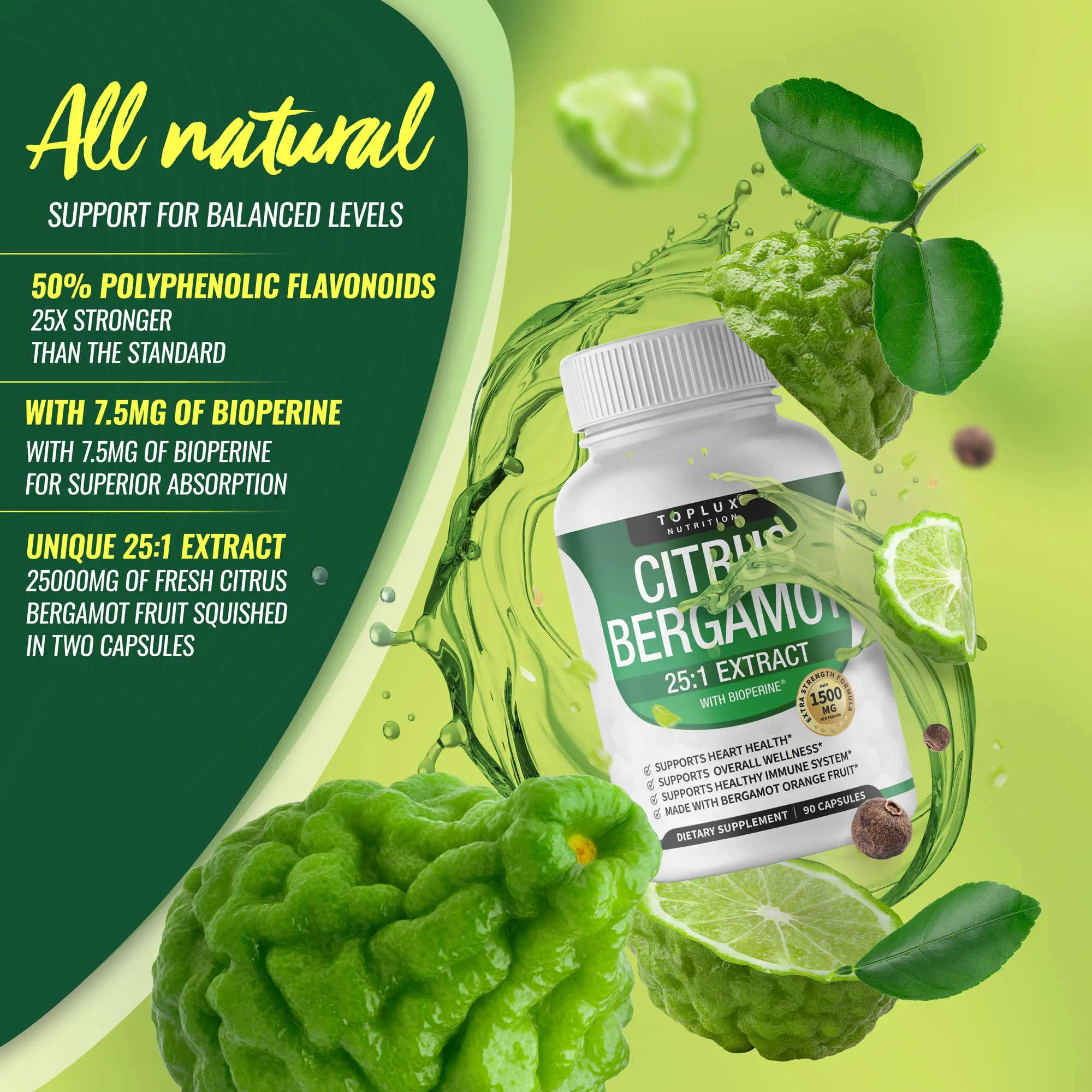 ·Natural Bergamot Fruit: Our supplement is made from pure, natural bergamot fruit extract, which is rich in beneficial compounds.