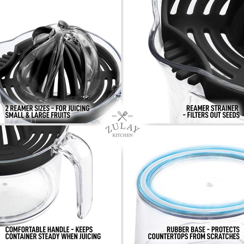 ·Versatile Reamers: Includes two reamers for different citrus sizes—12-tooth for limes and lemons, and a 3-claw reamer for oranges and grapefruit, which also functions as an egg separator.