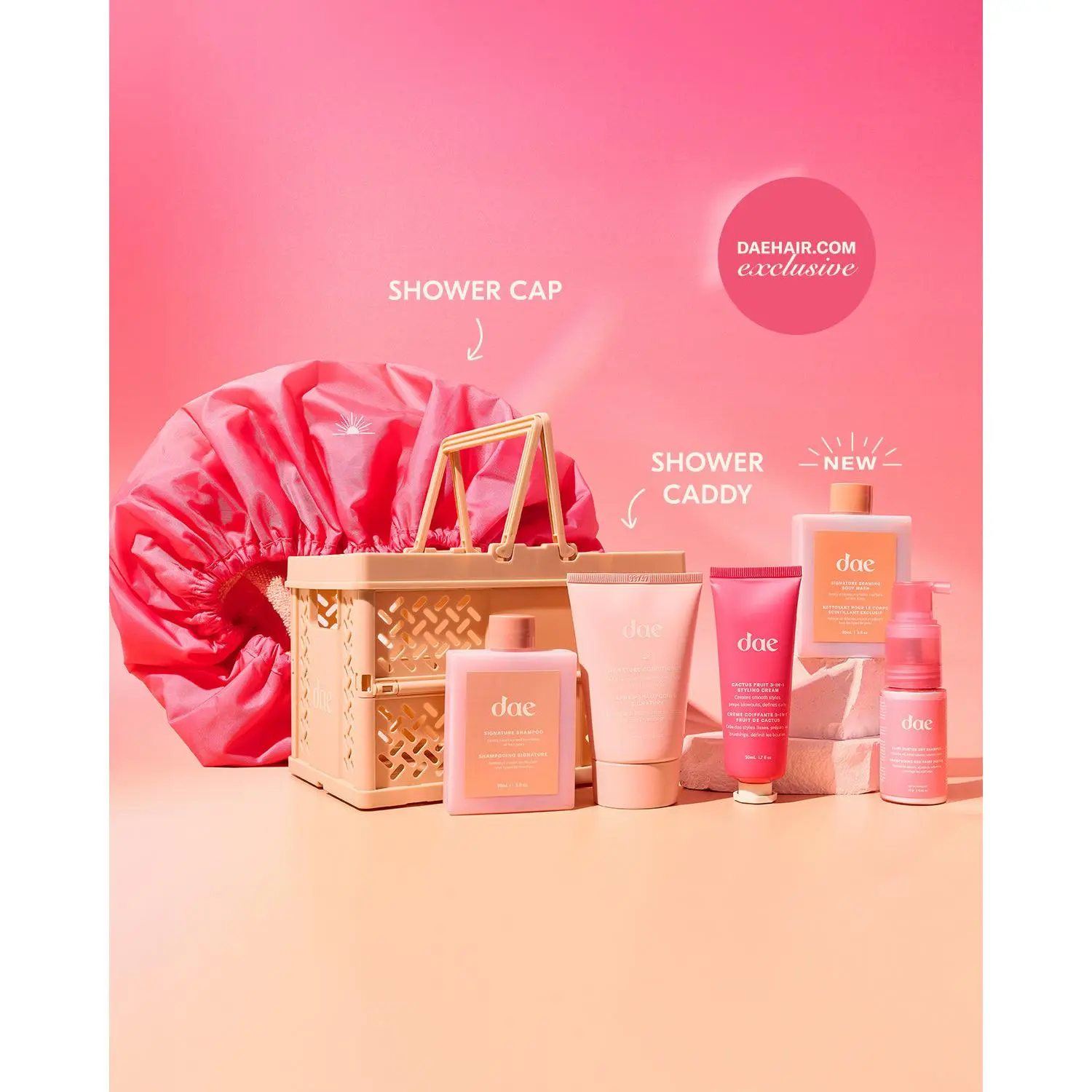 I love this kit so much it’s great for traveling. The shower cap is high quality and extra soft inside! The shower caddy keeps things organized. Highly recommend this if you want to try out Dae products for the first time !