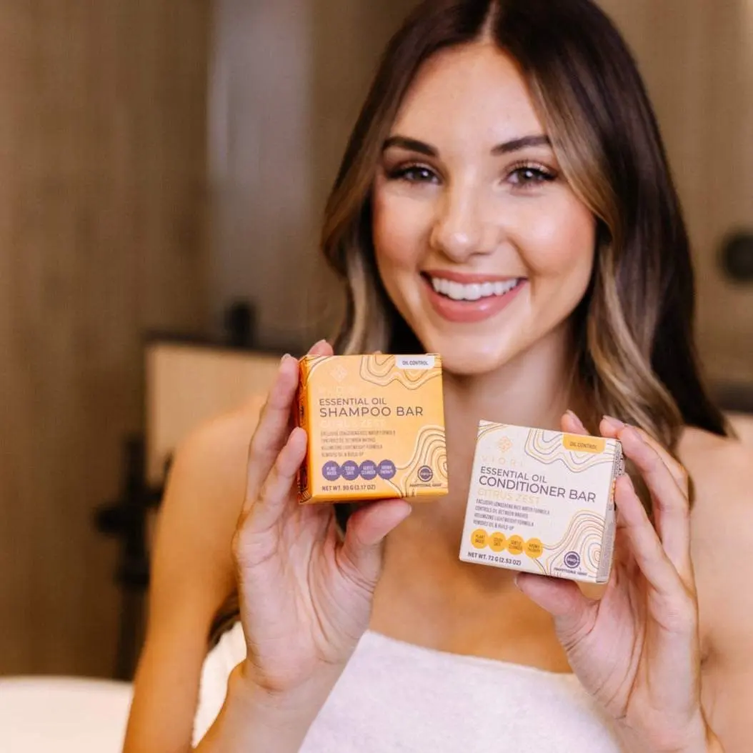 Introducing Viori's latest addition to the Essential Oil collection: Citrus Zest. Where Bergamot meets a fresh burst of citrus, it creates a vibrant hair care experience. Bergamot helps manage oily scalps, and the citrus blend boosts your hair's health and shine. The infusion of Longsheng rice water amplifies hair vitality and volume. Viori's Citrus Zest bars are free from synthetic fragrances, sulfates, parabens, and phthalates. They are pH-balanced, vegan, plastic-free, sustainable, cruelty-free, and 100% ethically sourced. Bamboo holders sold separately.