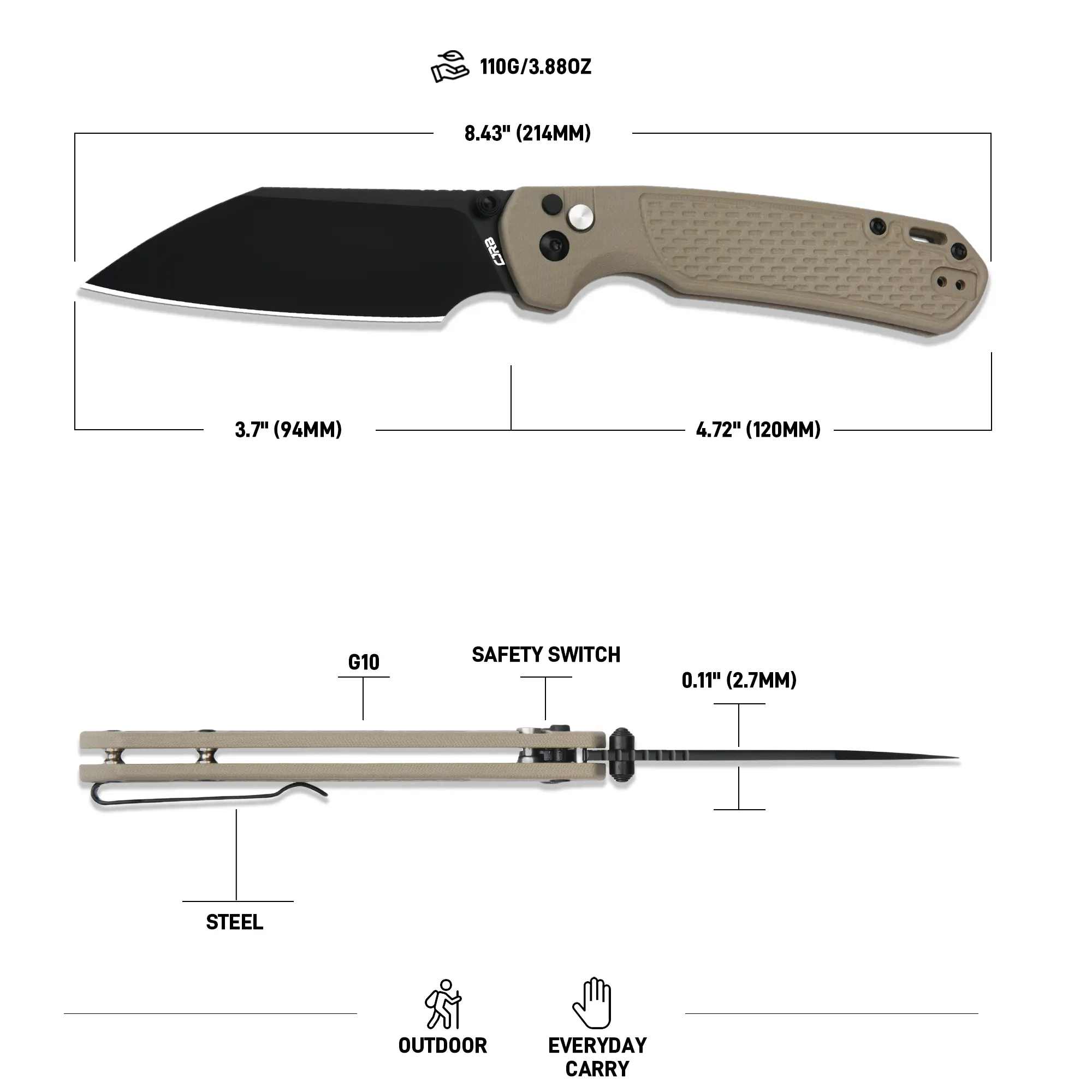 5. CJRB Large Pyrite-Light J1945L AR-RPM9 Steel Blade G10 Handle Knives Suitable for Camping Survival Hiking