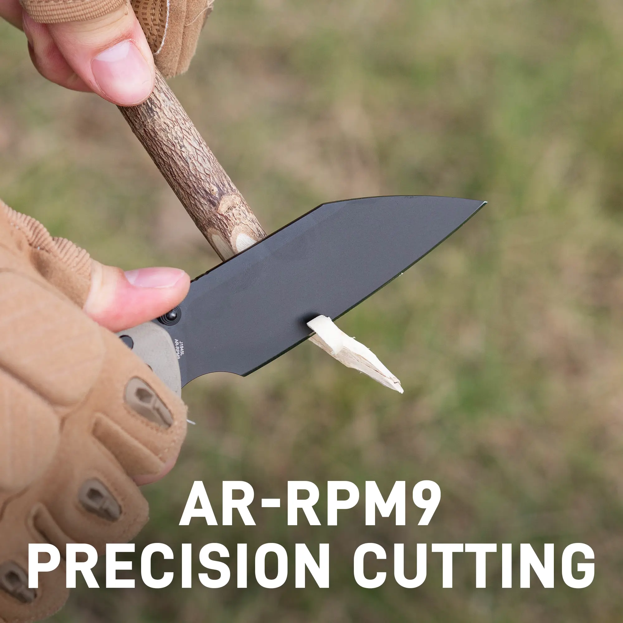 Blade Length: 3.7" (94mm) Blade Thickness: 0.11" (2.7mm) Blade Finish: Stone Wash/Black PVD Coating Blade Grind: Flat Blade Material: AR-RPM9