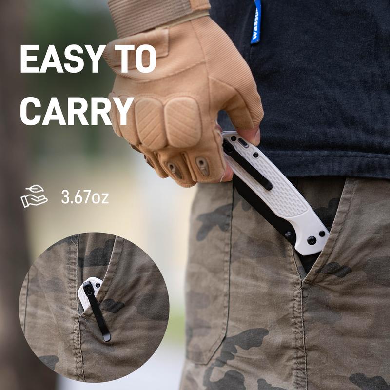 I love the Pyrite knife. Quick shipping and the build quality is wonderful. Plus, the price cannot beat Edit- after using this knife for 5 months, the lock and the release button don't work anymore. It's actually dangerous to use now since the knife is still razor sharp and the blade doesn't lock.