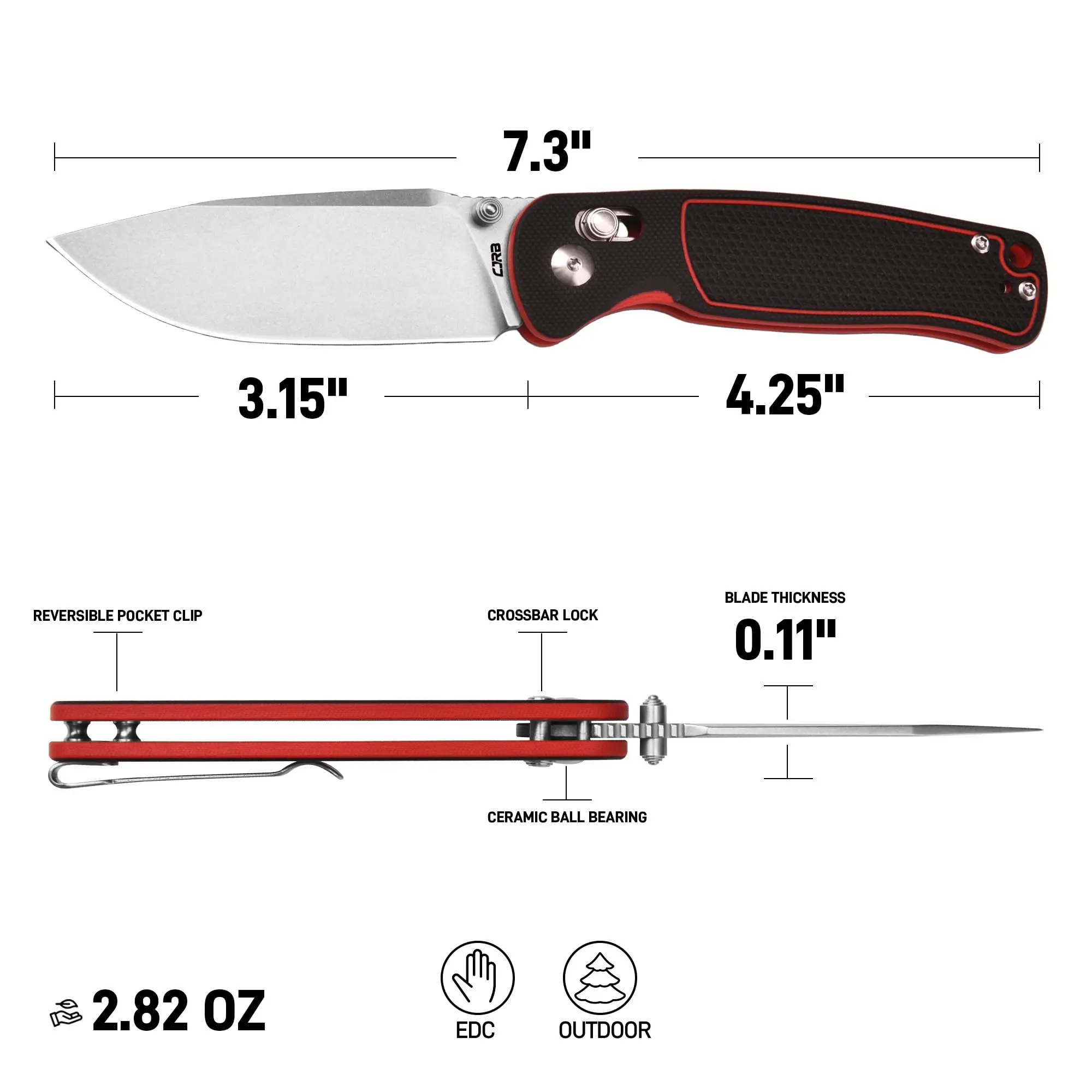 ·【Compact and Lightweight】: With an overall length of 7.3" and a closed length of 4.15", this pocket knife for men is easy to carry. Weighing only 80g (2.82oz), it fits seamlessly into your pocket without adding extra weight.