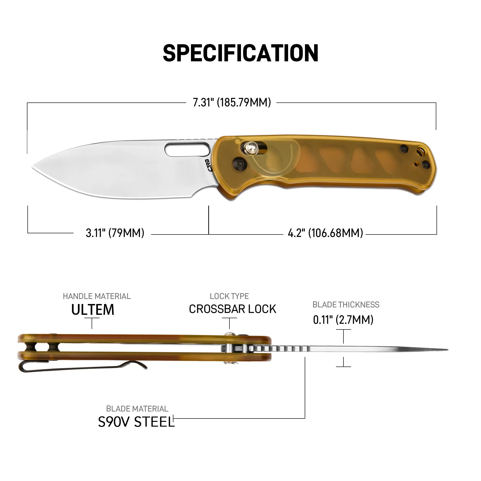 Introducing the CJRB Hectare J1935 CPM S90V Powder Steel Blade Ultem Handle Folding Knife, a versatile tool designed for both precision and functionality.
