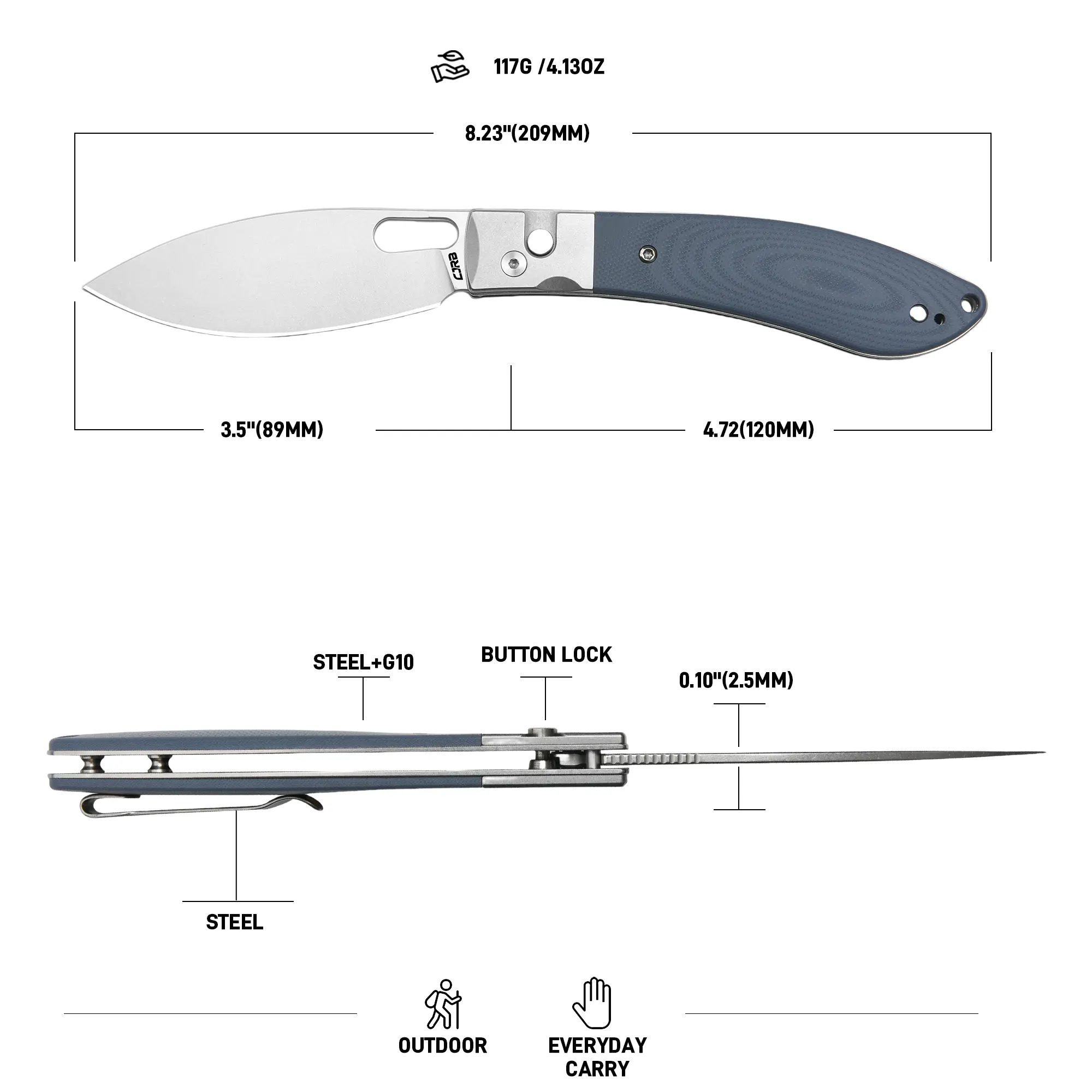 ·Precision Cutting Edge: Featuring a 3.5'' AR-RPM9 steel blade rated at HRC59-61, this pocket knife guarantees outstanding edge retention and toughness, making it ideal for both urban tasks and outdoor pursuits