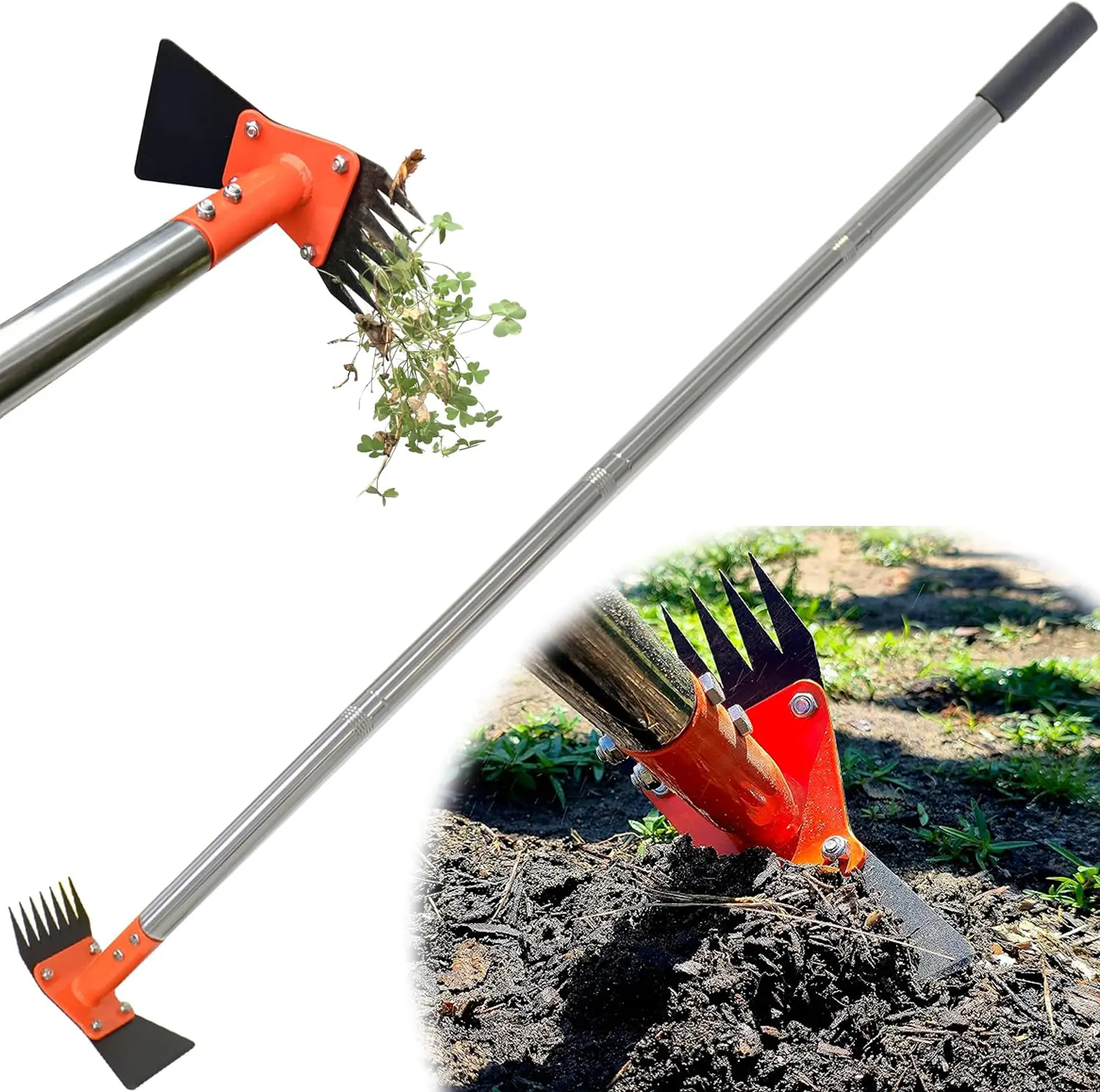 Combines a sharp trapezoid hoe for breaking soil and cutting weeds with a 9cm rake for grabbing weeds or cleaning brick joints.The hoe can be used for loosening soil, clearing dead grass, edging, and tilling.Owning our hoe is equivalent to owning a variety of gardening tools.