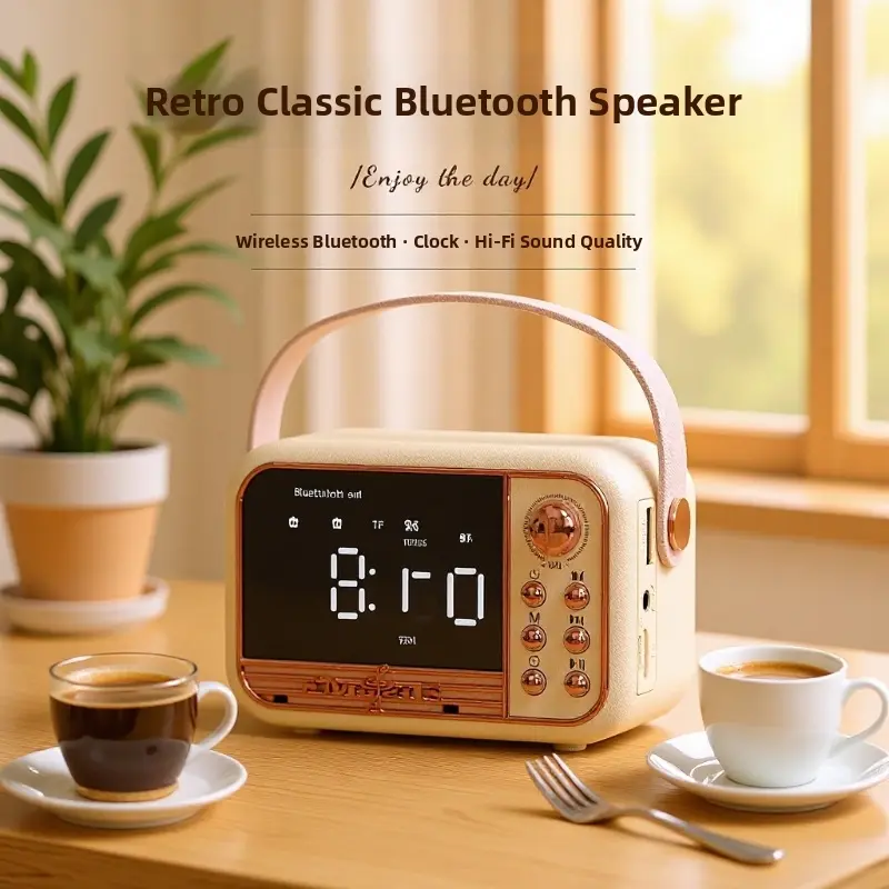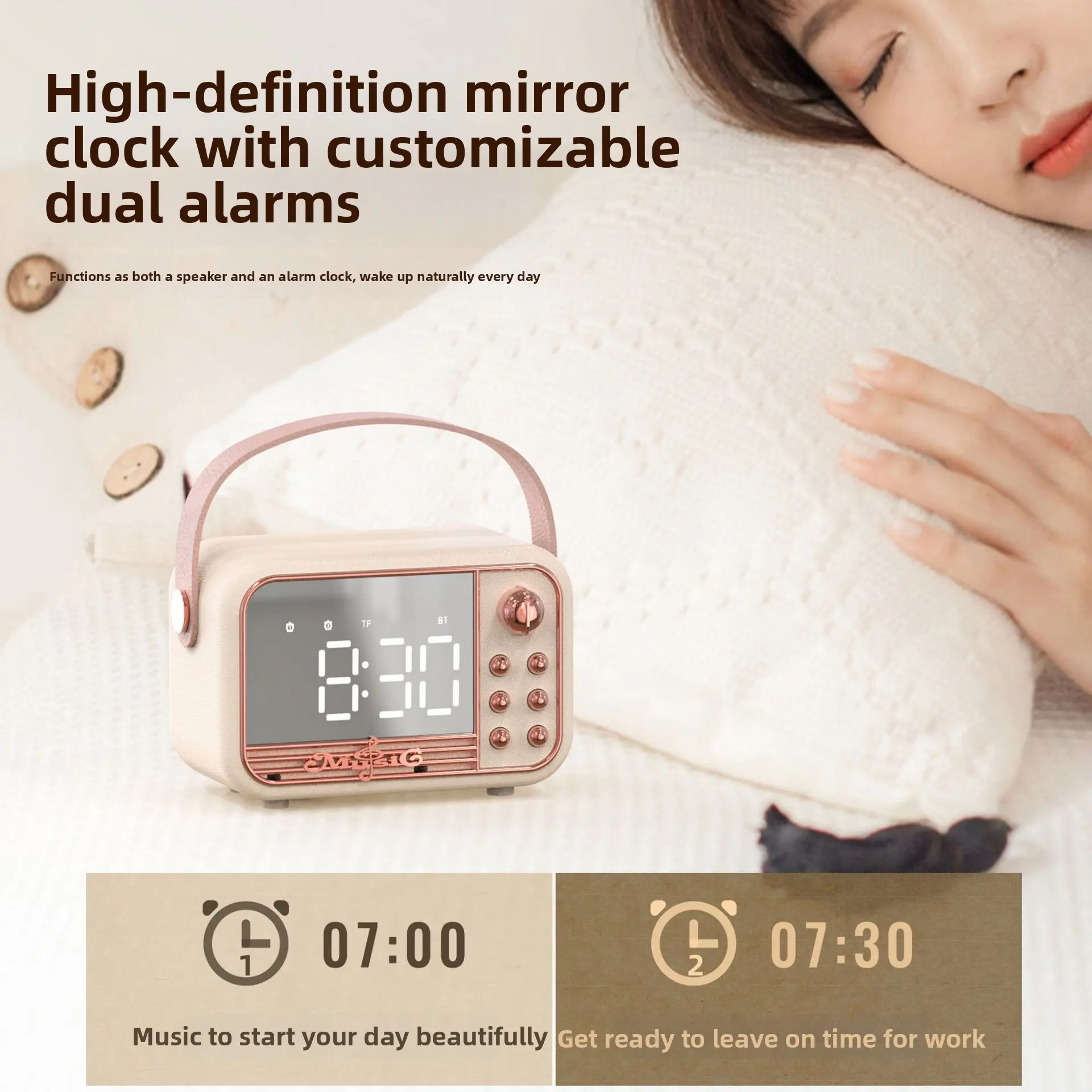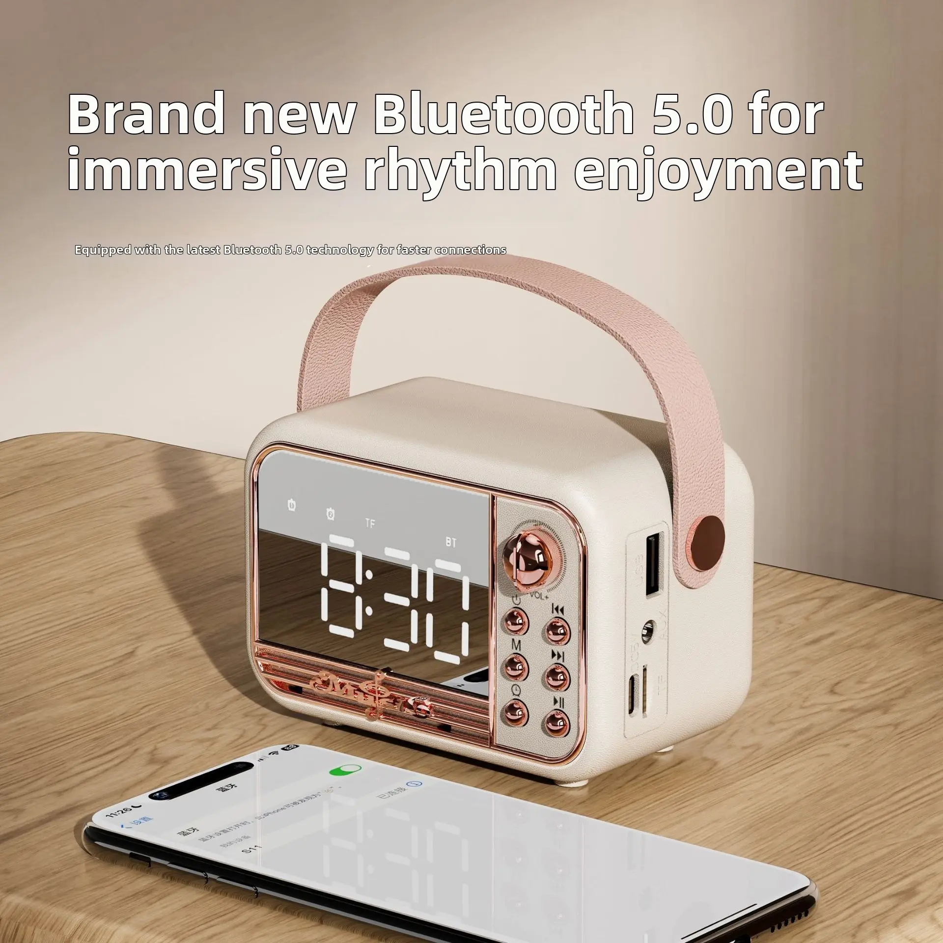 Retro-style wireless Bluetooth-compatible speaker, multi-functional portable mini speaker, time display with alarm setting, home, office, outdoor travel music player, Mother's Day gift