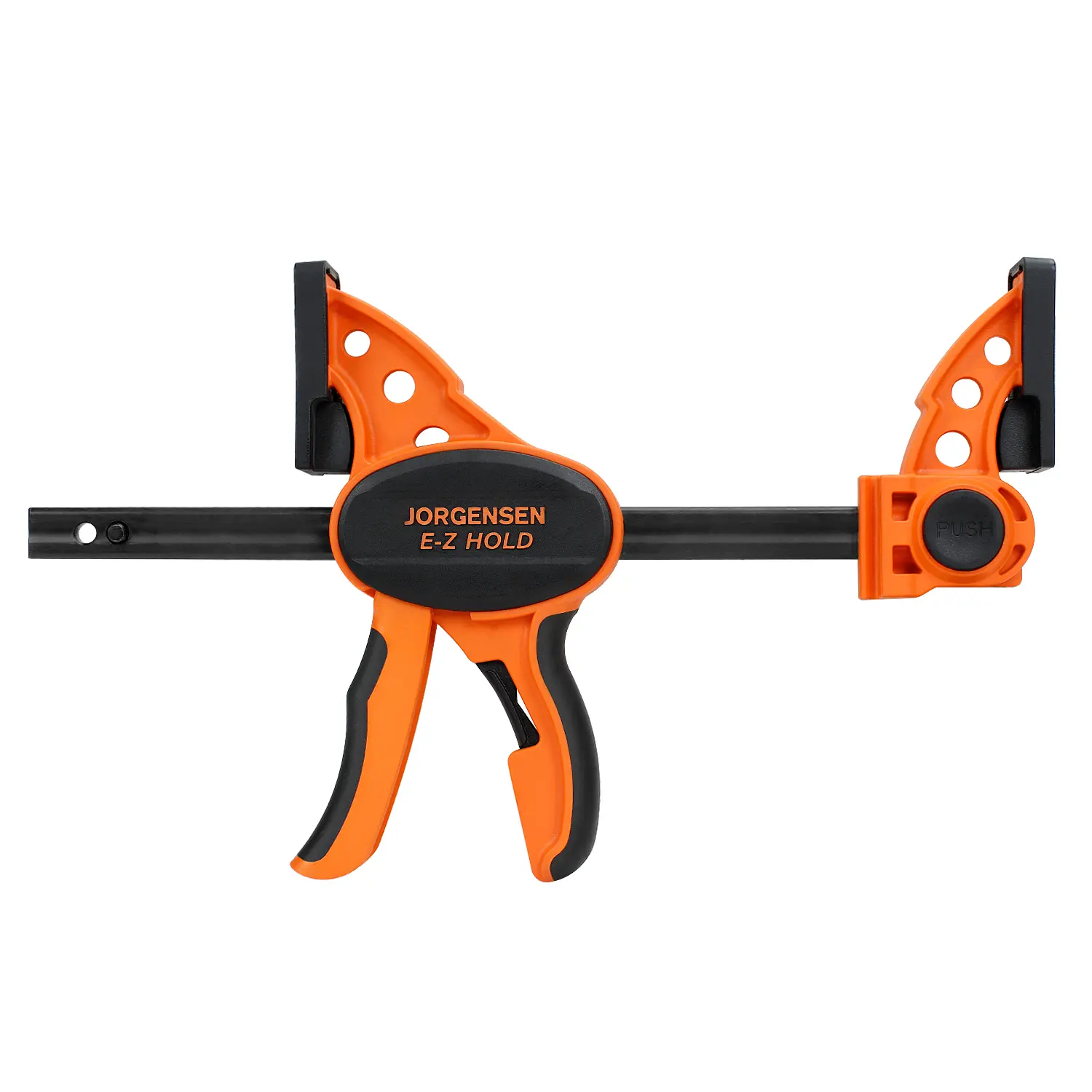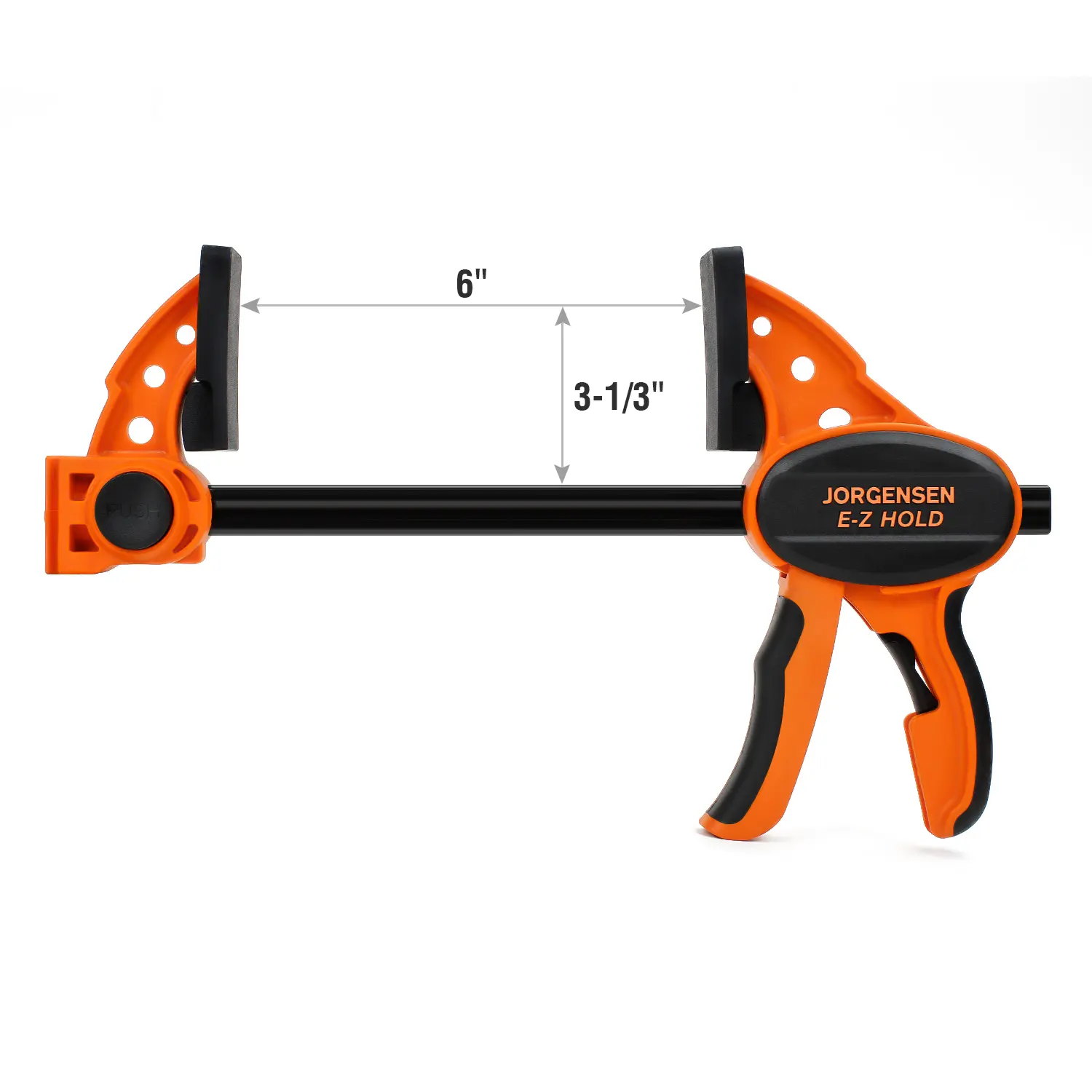 ·High-carbon steel bar and glass-filled nylon handle make it solid and durable. The contoured comfort grip and quick-release lever make it simple to get a firm grasp. Deep-reach pads help protect your work.