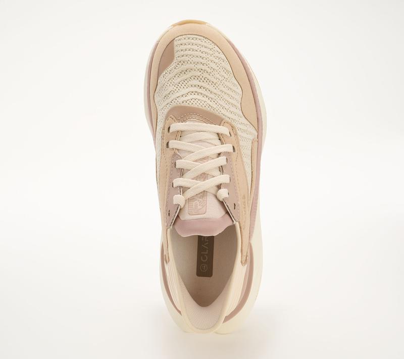 Cruise through busy days with these tech-enhanced lace-up sneakers, designed to deliver cushion, rebound, and support from sidewalks to errands. The woven upper is paired with a molded heel and TPU clip for extra stability, while the C360 foam cradle boosts comfort and energy return wherever you roam. From Clarks Footwear.