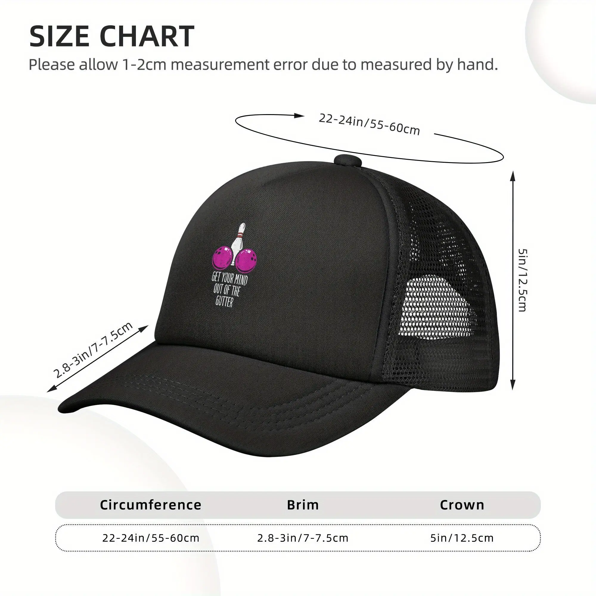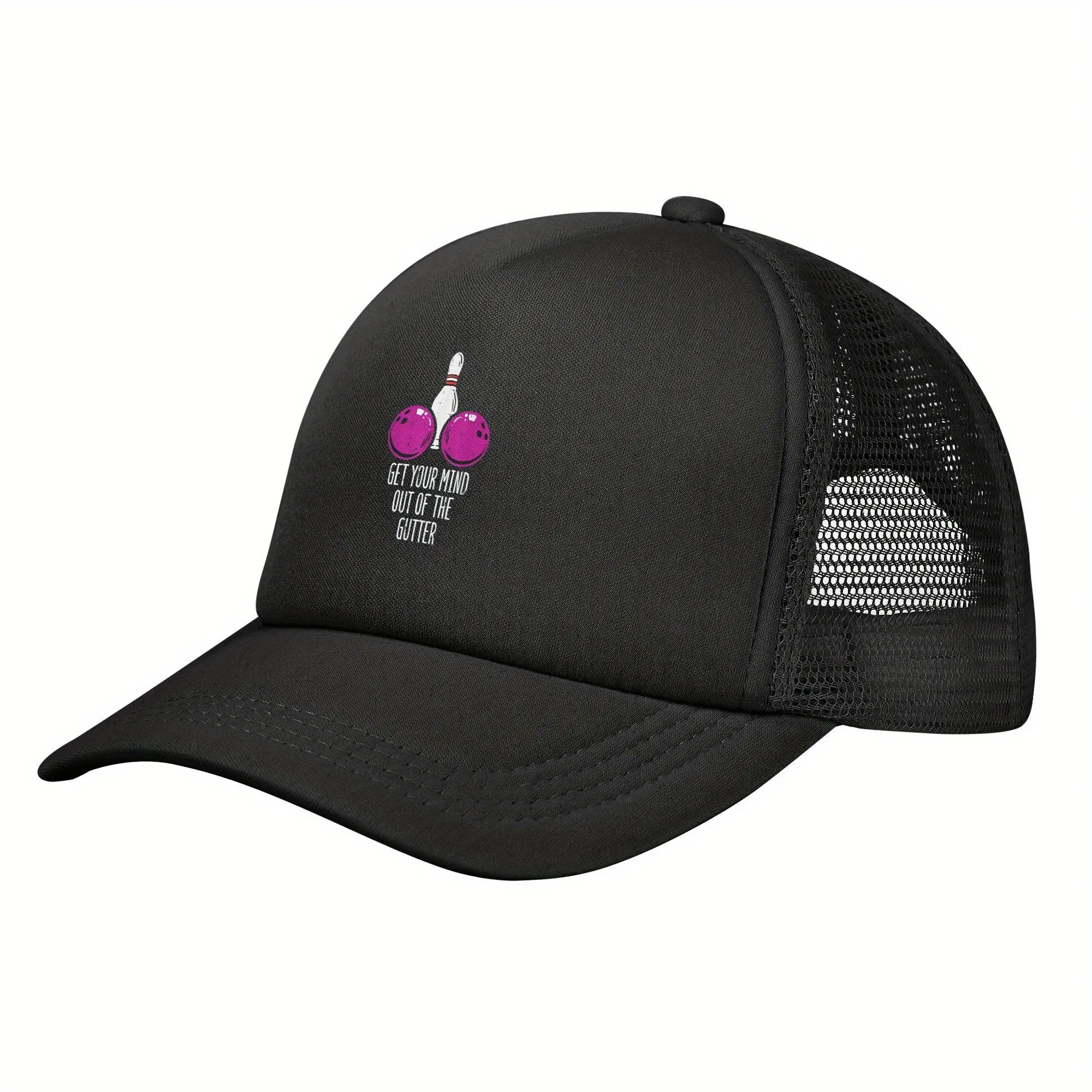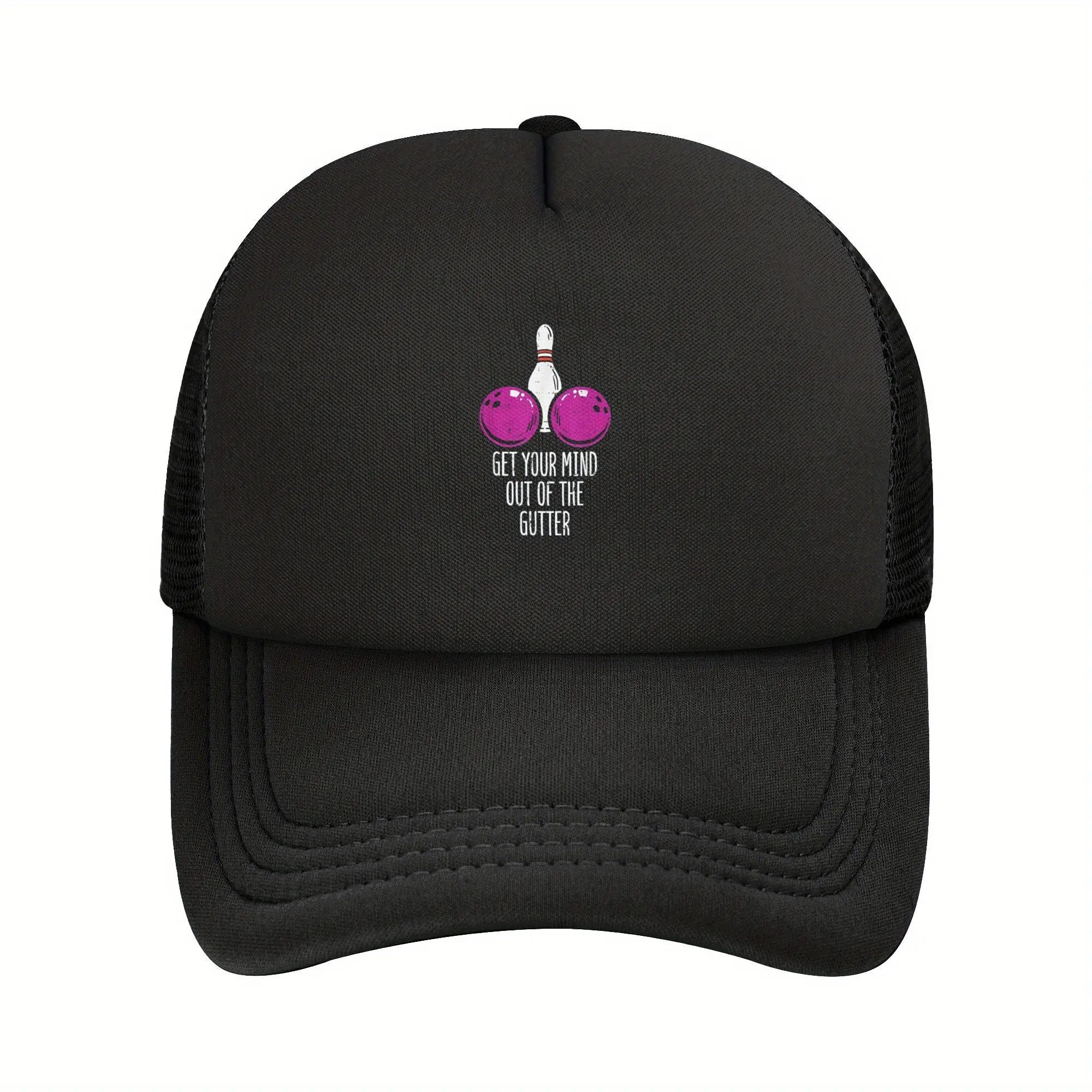 Unisex Classic Black Baseball Cap with Bowling Get Your Mind Out of Gutter Funny Bowler, Funny Hat, Trucker Hat, Hats for Men, Hats for Women, Adjustable Trucker Hat, Outdoor Sports, Party, Hiking Visor, Cap