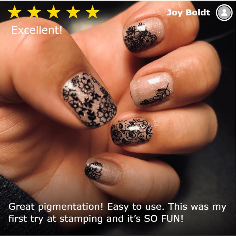 Maniology stamping polish is 5-free! We want you to look beautiful and stay beautiful, so our nail stamping polishes are made without 5 of the most common toxic chemicals found in most nail polishes. For more information, visit our FAQs page!