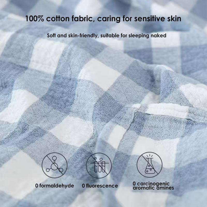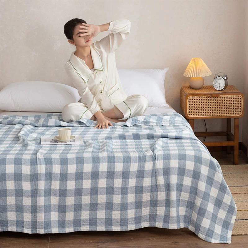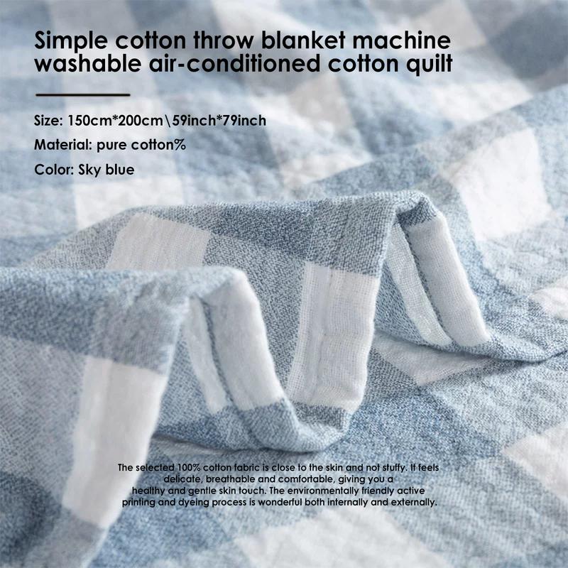 H&D Classic Blue Checkered 100% Cotton Blanket, Soft Cozy Breathable Warm, Hypoallergenic Throw Blanket, for Couch Office Bed Camping Travel Multi Purpose, Gift for All Seasons