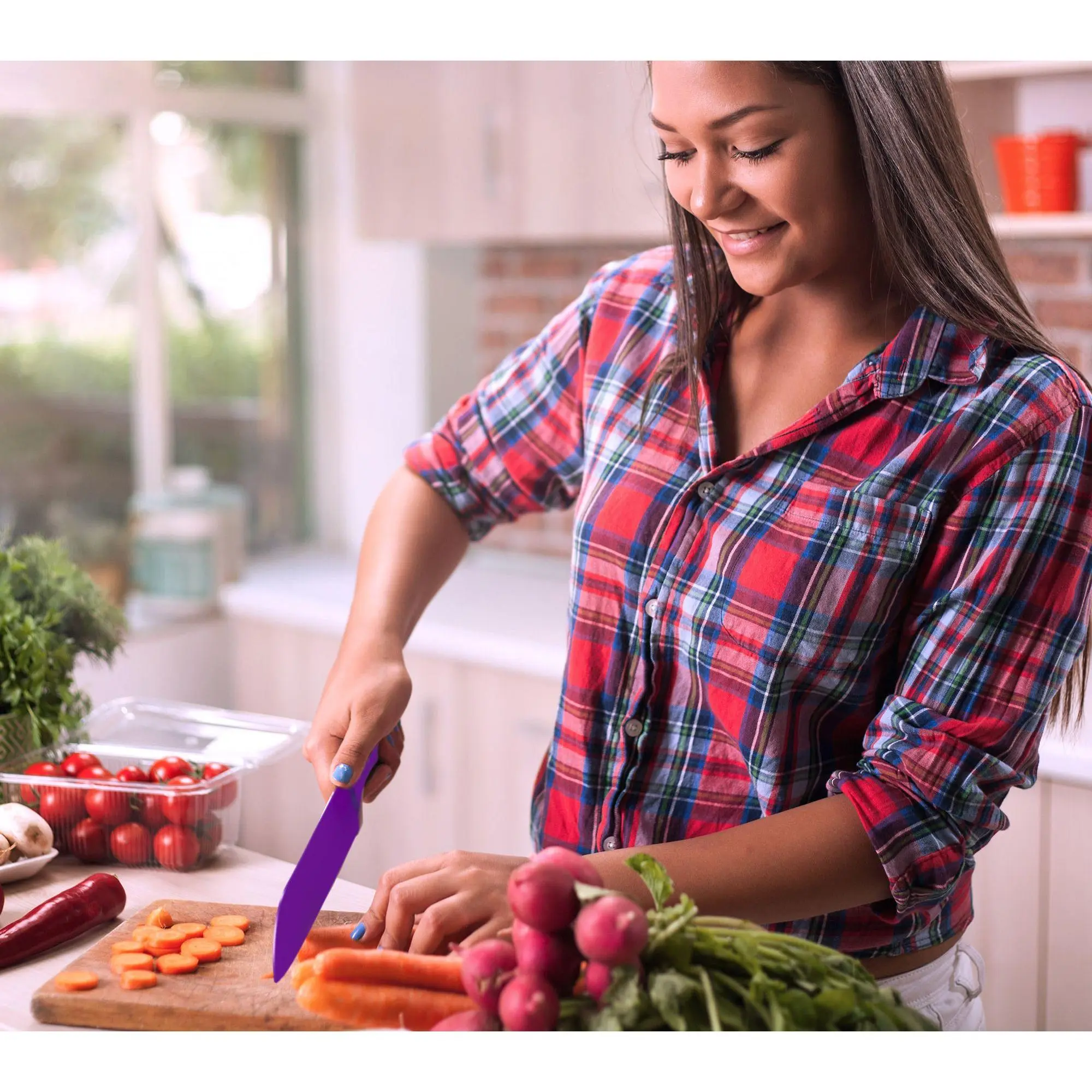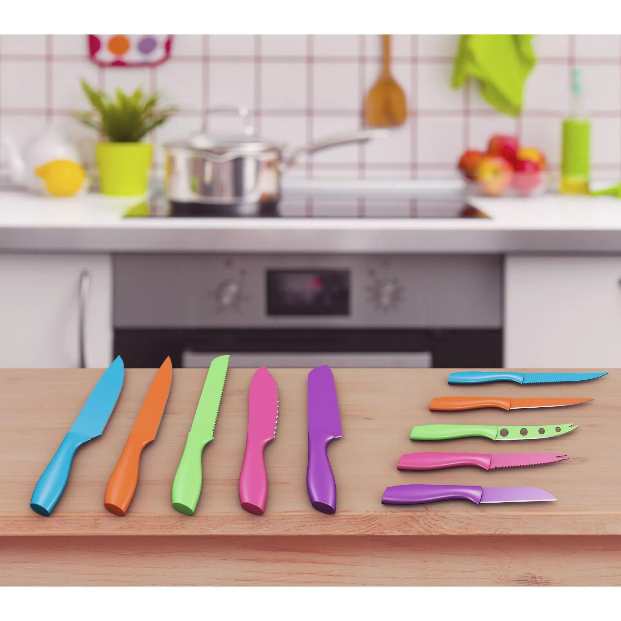 Set aside your drab, uninspiring knives, and bring on a knife set that's as vibrant as your life is. This 10-piece knife set is colored with a food-safe, stick-resistant coating. Not only does this collection bring a pop of color to your kitchen decor, but it helps you remember which knife was used on meats and vegetables, helping prevent cross-contamination when cooking. You also receive a magnetic knife bar that makes displaying and storage a snap. From Classic Cuisine.