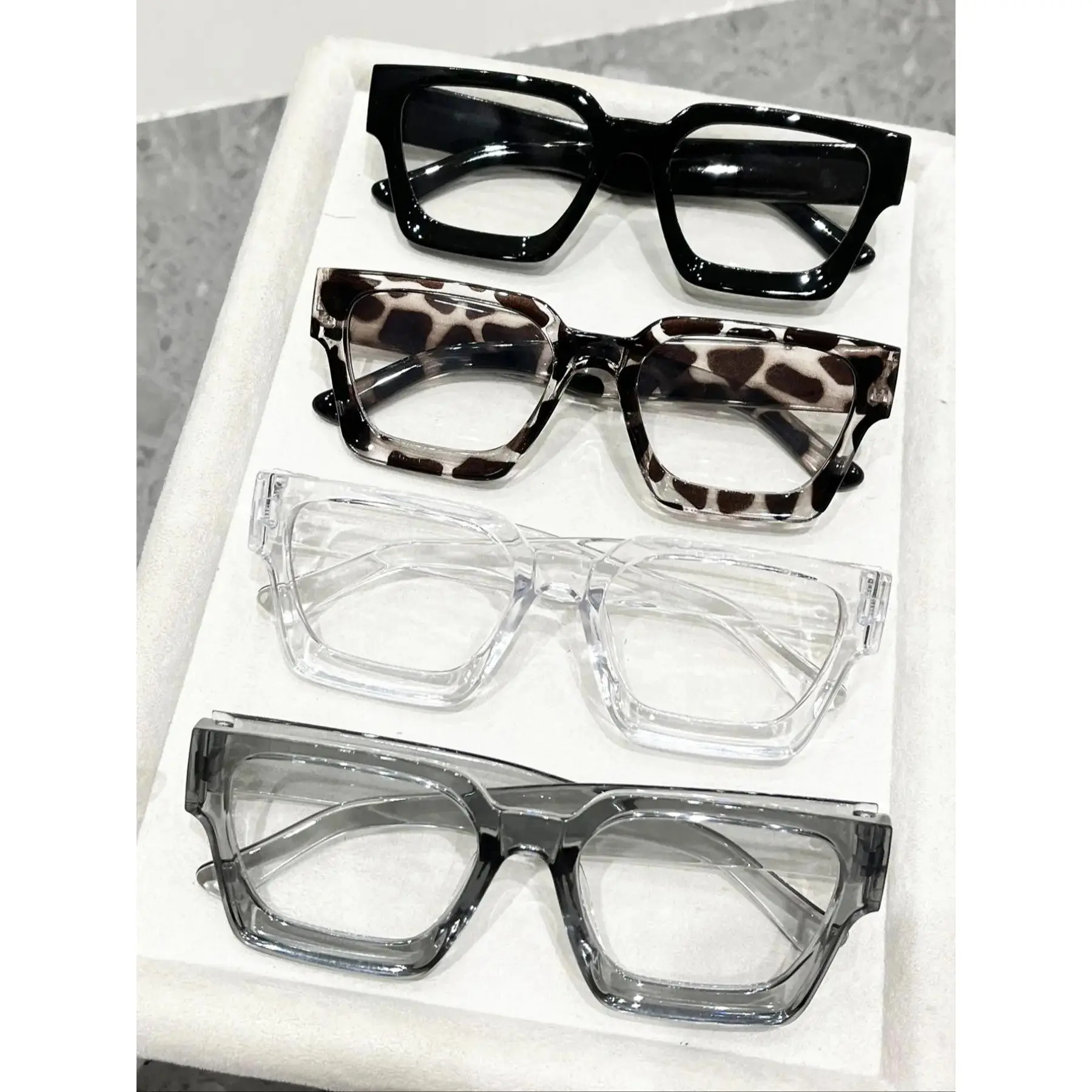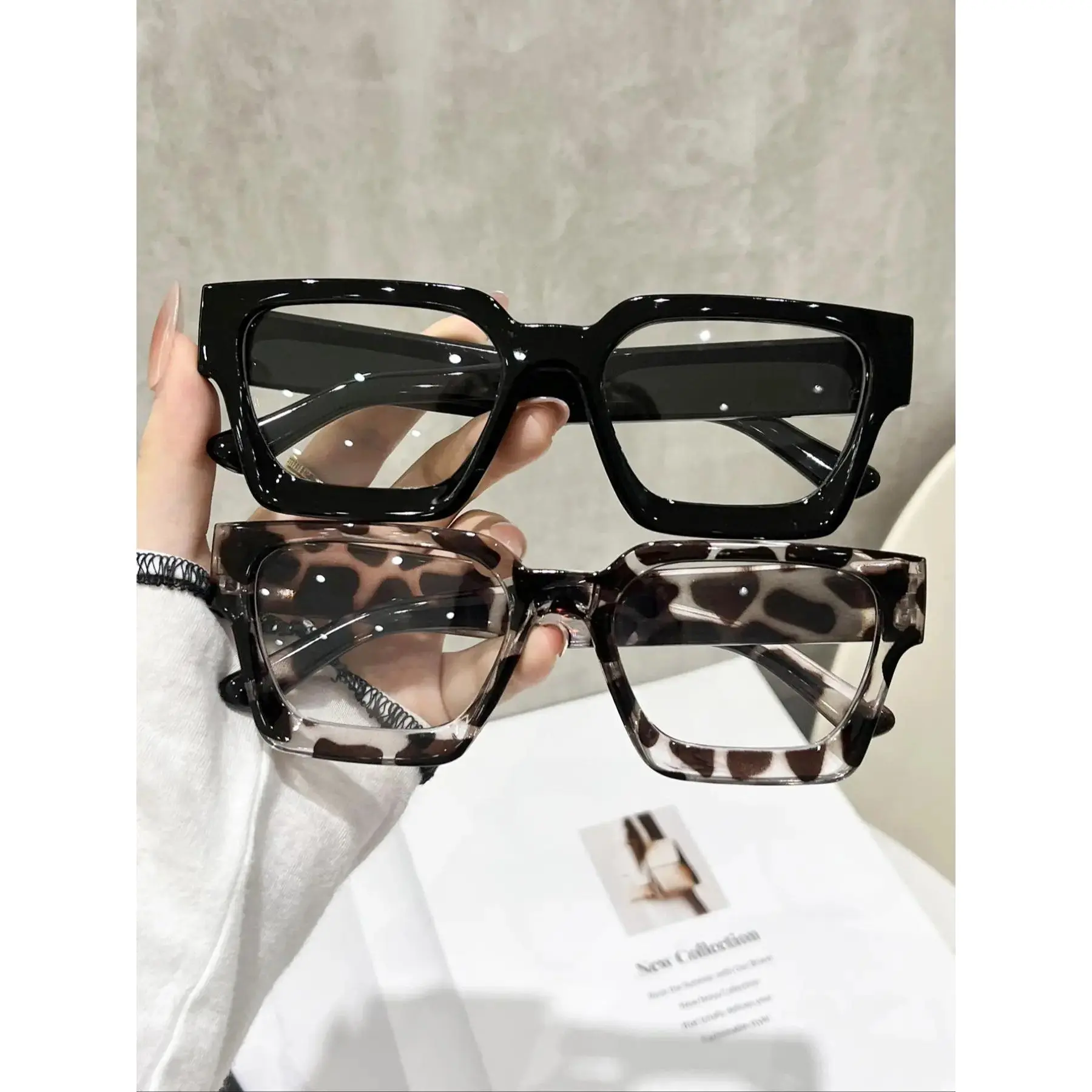 Classic Elegant Unisex Non-Prescription Glasses, Square Leopard Pattern, Casual Style, Leopard Pattern Eyeglasses, Stylish Square Frames, Suitable for Daily Life, Office, Leisure Activities