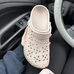 True to size!! Super comfy but don't wear without socks!! Gave me a nice blister on my ankle from them rubbing against my bare skin. So wear socks. I love Crocs and these Daisy cutout ones are super cute!! Buying my mom a pair next. Can't beat it for $20!!