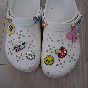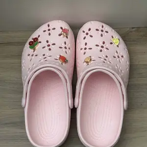 LOVE LOVE LOVE these Crocs so much!! Theyโre so comfy and the cut outs + charms are adorable together! 10/10 would get them again ๐